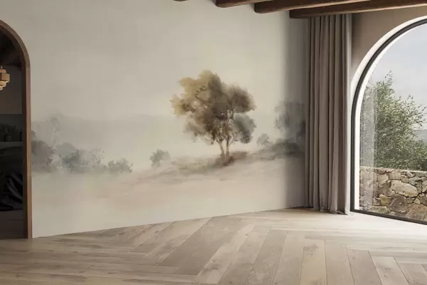 Fototapetai Minimalistinis peizažas su vienišu medžiu rūke Nr. w05223