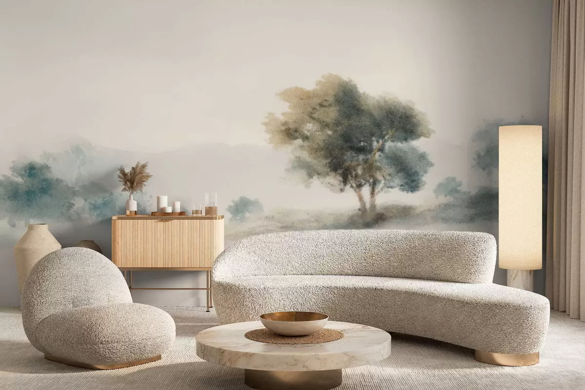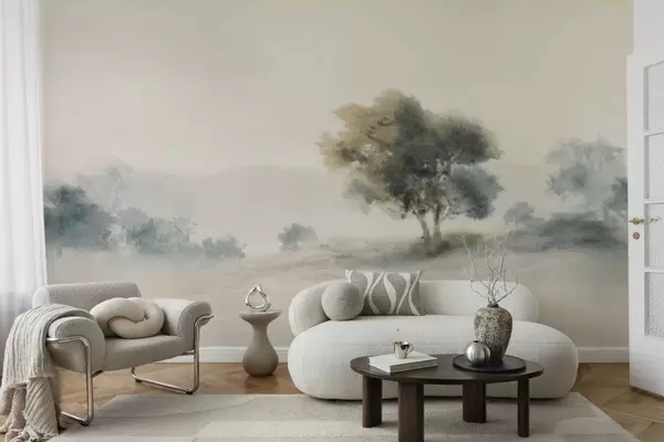 Fototapetai Ramus peizažas su medžiu ir švelniai neryškiomis formomis Nr. w05223v1