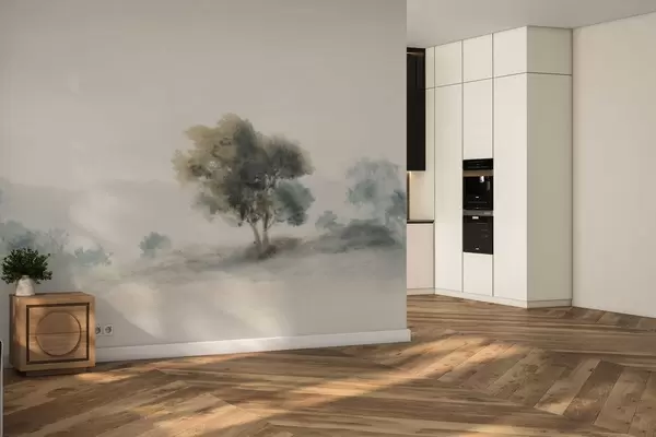 Fototapetai Ramus peizažas su medžiu ir švelniai neryškiomis formomis Nr. w05223v1
