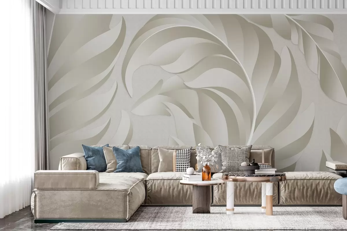 Fototapetai dideli tekstūruoti plunksnai smėlio ir alyvuogių atspalvių Nr. w05231v1