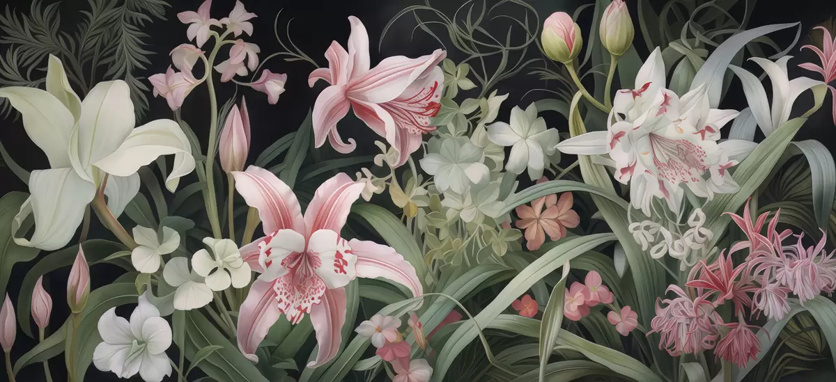 Fototapetai Fantastiškos gėlės ant tamsaus fono Nr. w05278
