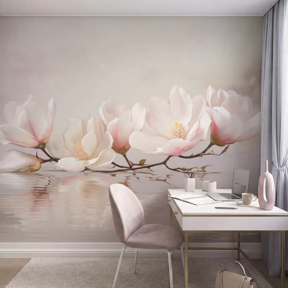 Fototapetai Magnolijos šaka su žiedais virš ramaus vandens atspindžio Nr. w05353v1