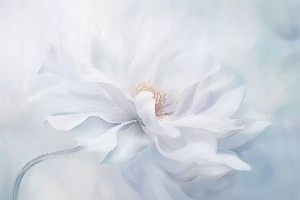 Fototapetai Minkšta balta gėlė su plaukiančiais žiedlapiais mėlyname fone Nr. w05354