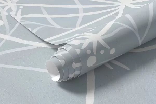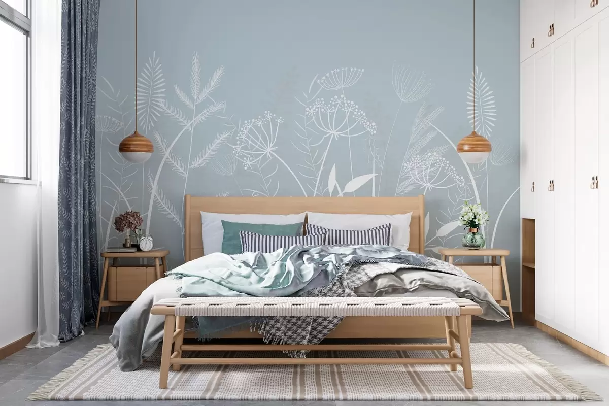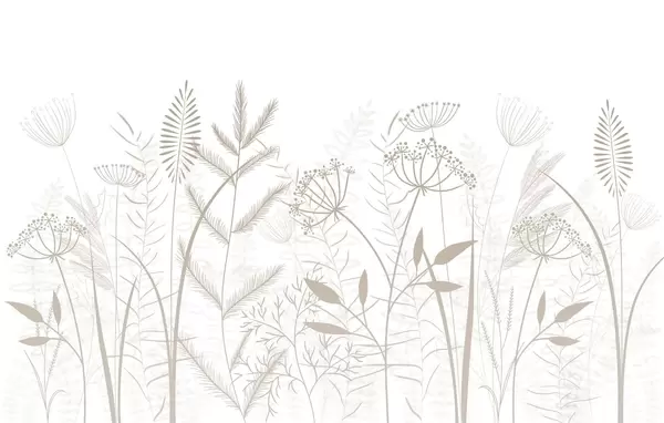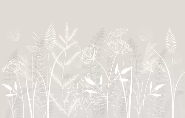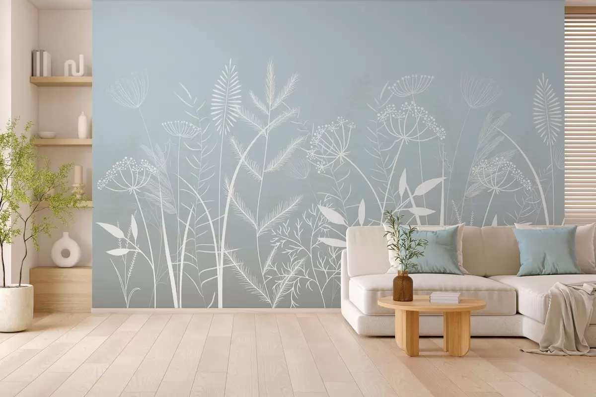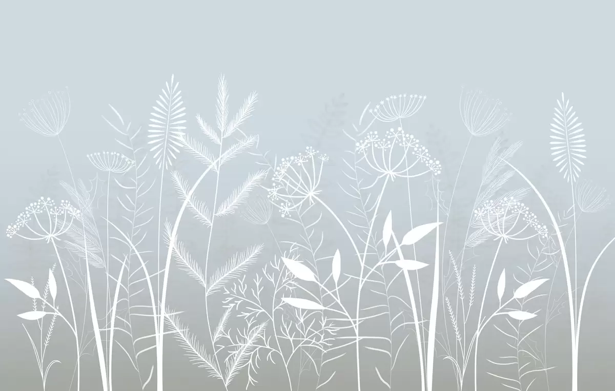 Fototapetai subtilūs, rankomis tapyti laukiniai žolės ir gėlės ant pilkai mėlyno fono Nr. w05383