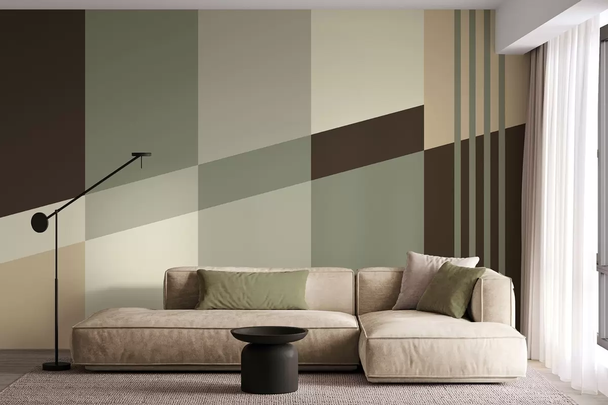 Fototapetai Subtilūs geometriniai raštai alyvuogių, smėlio ir rudos spalvų atspalviais w05390