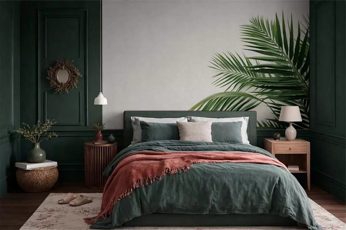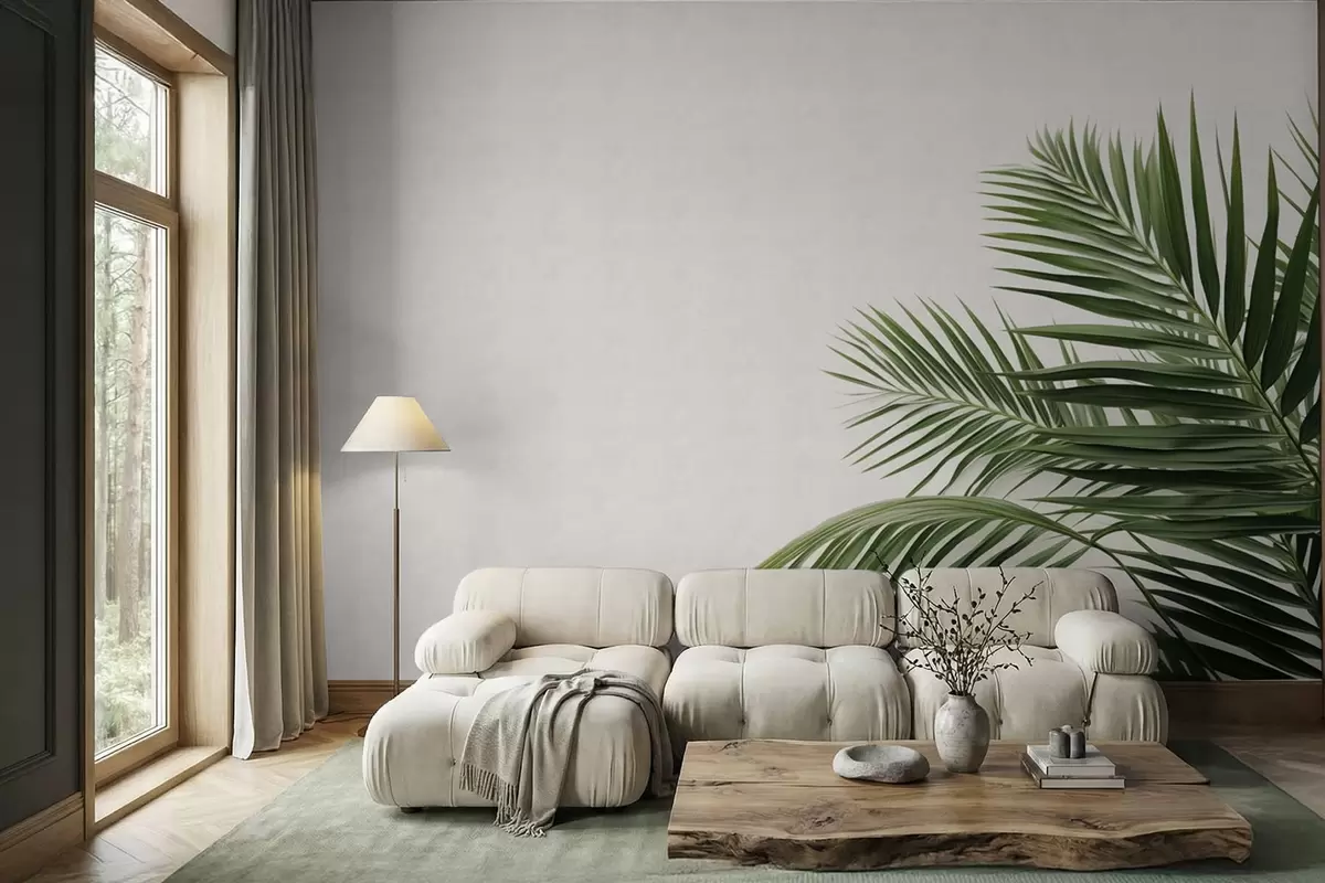 Fototapetai Žali palmių lapai šviesaus fono fone Nr. w05391
