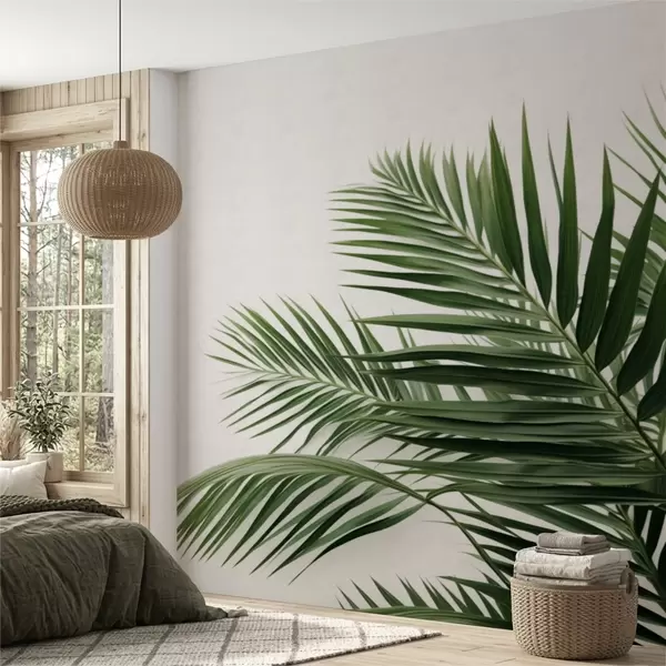 Fototapetai Žali palmių lapai šviesaus fono fone Nr. w05391