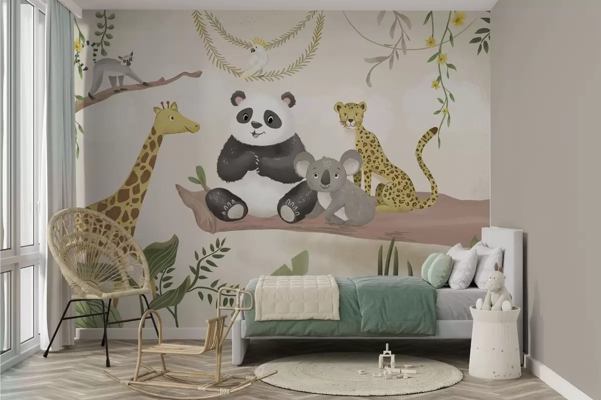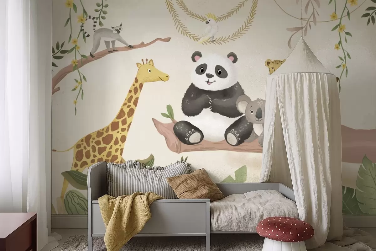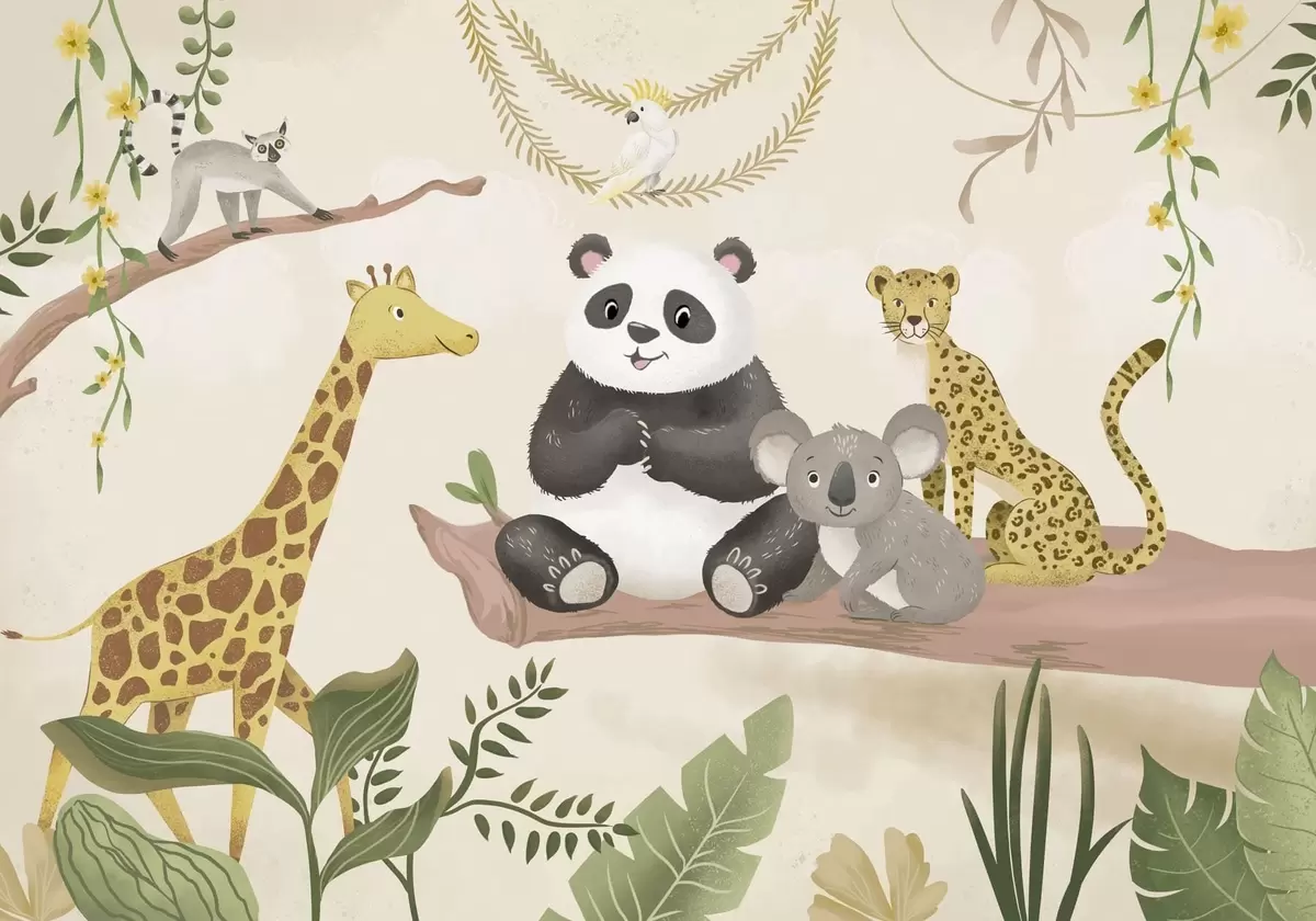 Fototapetai Mielos džiunglių gyvūnėlės ant šakos tarp augalų Nr. w05393