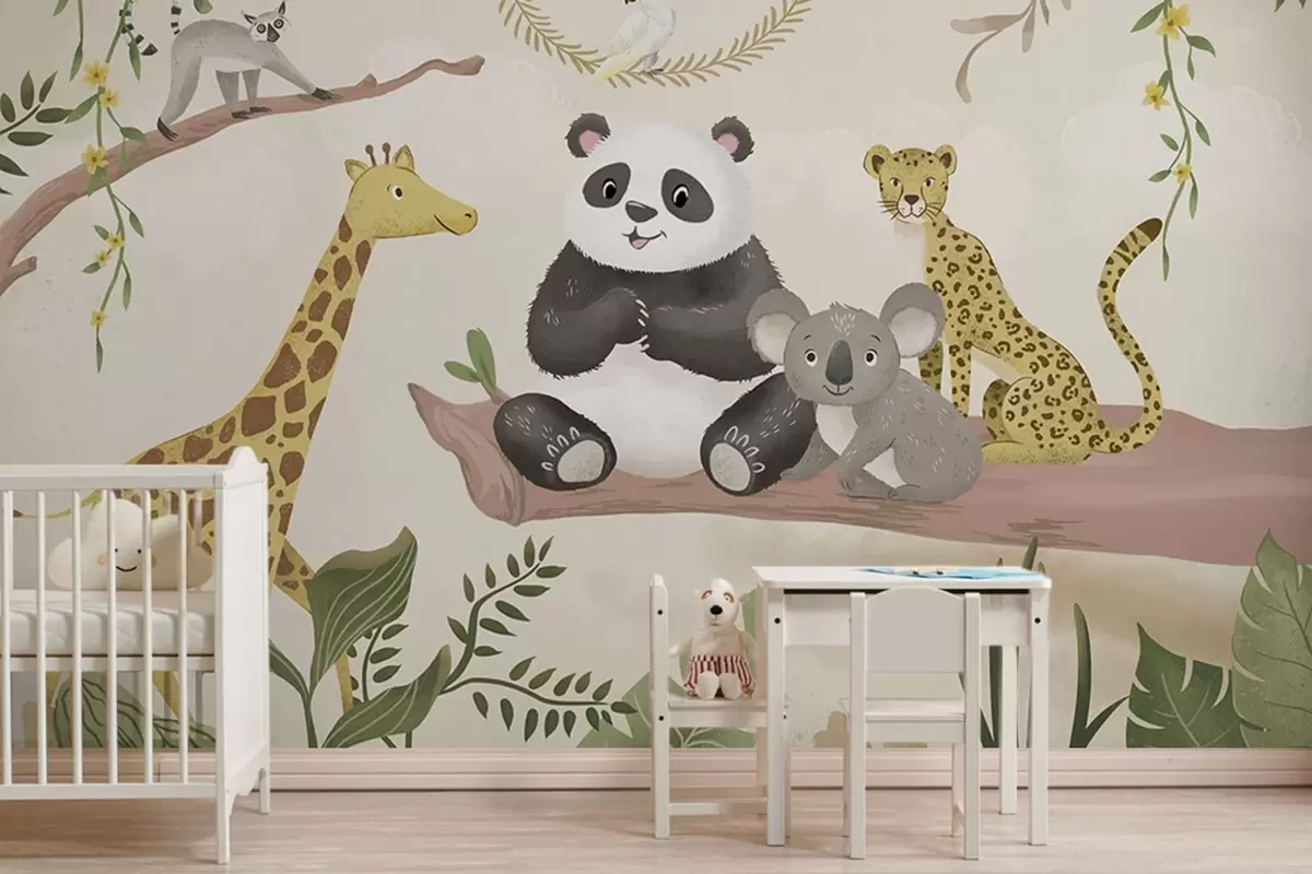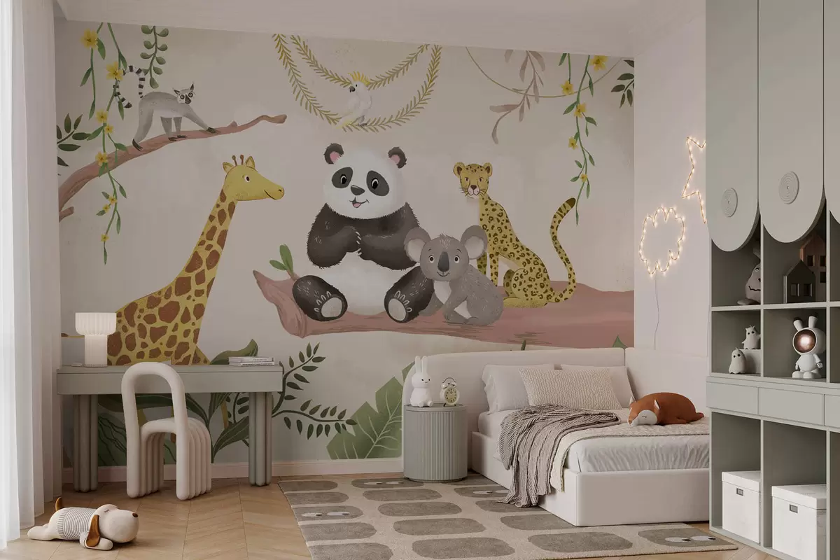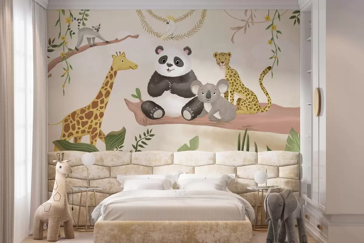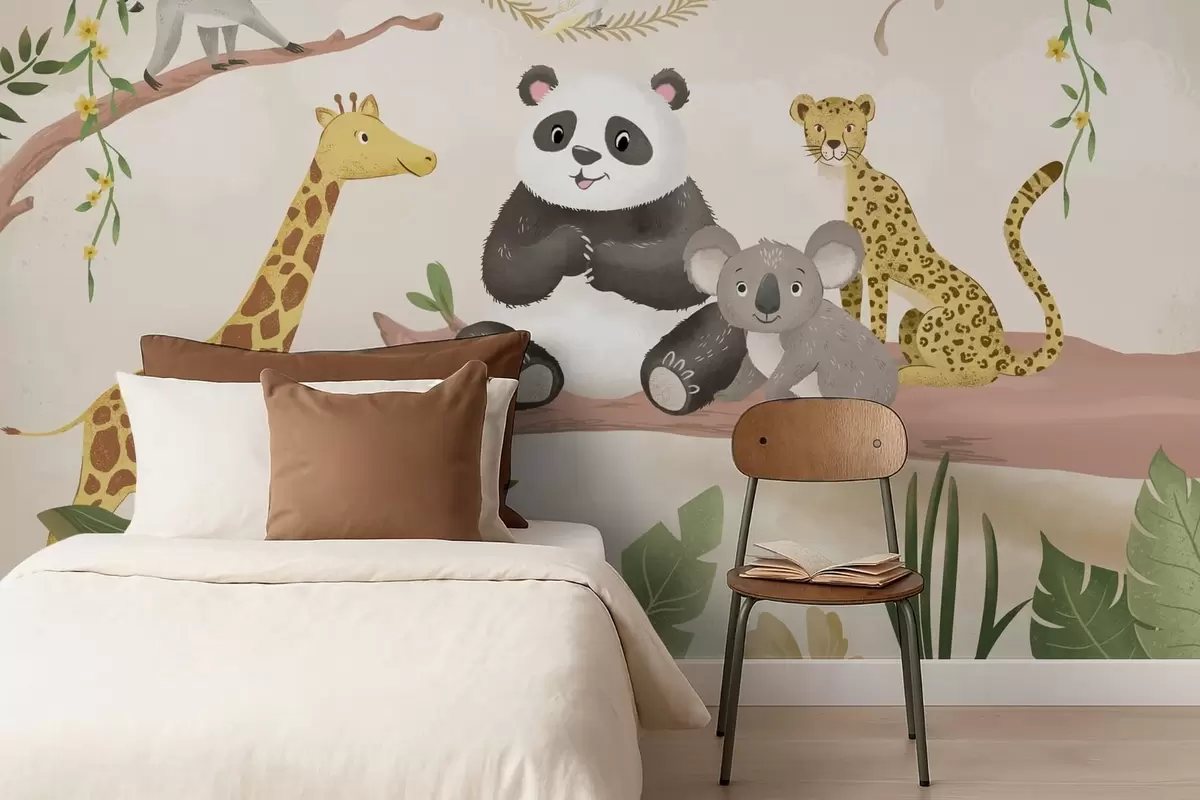 Fototapetai Mielos džiunglių gyvūnėlės ant šakos tarp augalų Nr. w05393