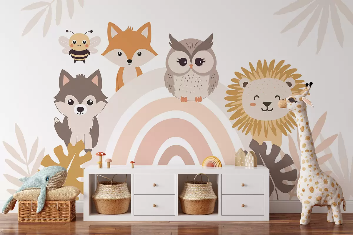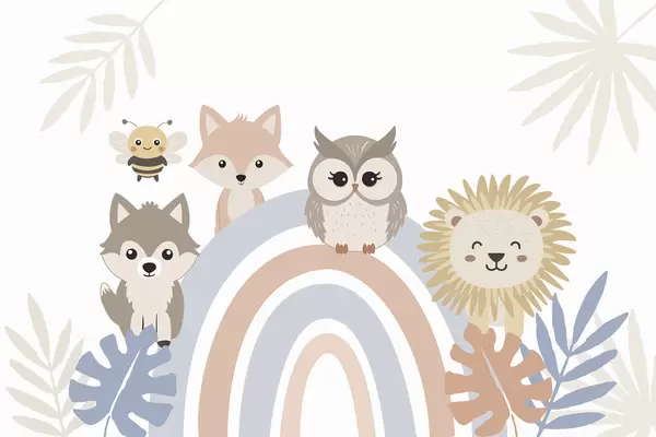 Fototapetai Mielos gyvūnėlės prie vaivorykštės Nr. w05399