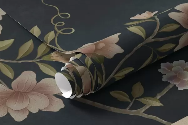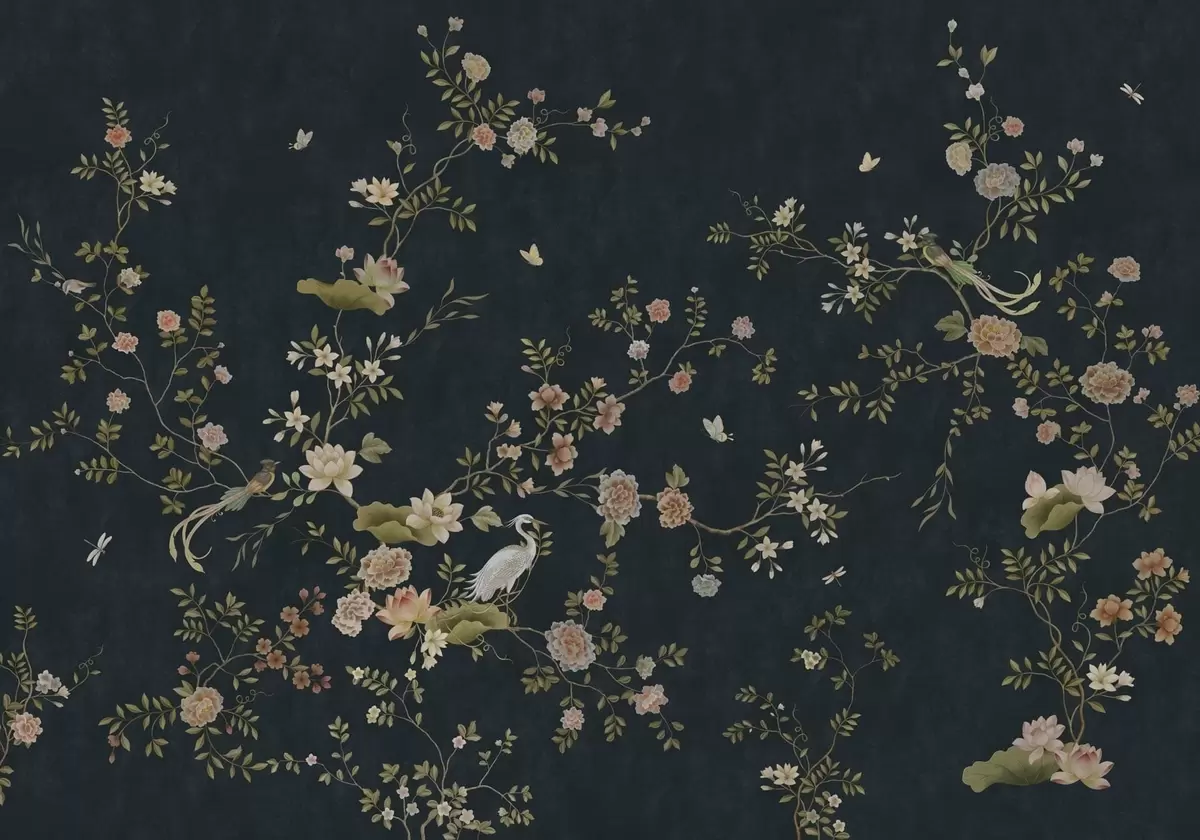 Fototapetai Žydinčios šakos su paukščiais ant tamsaus fono Nr. w05416v3