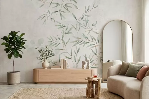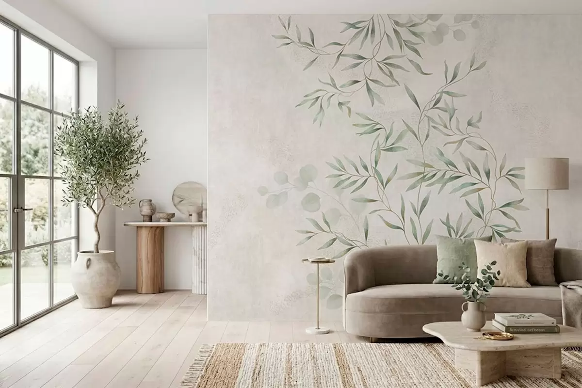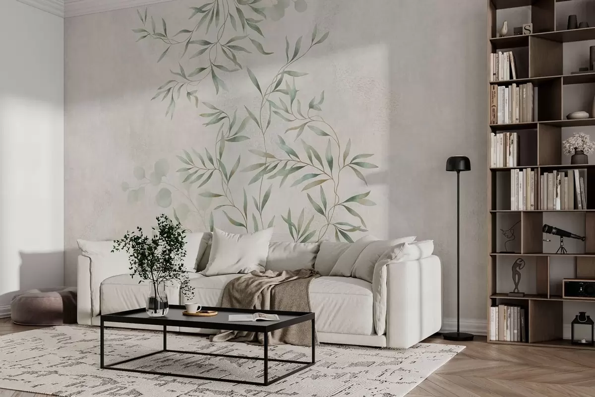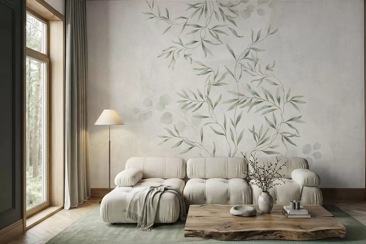 Fototapetai Subtilus augalinis raštas su plonomis šakelių linijomis ant šviesaus fono Nr. w05424