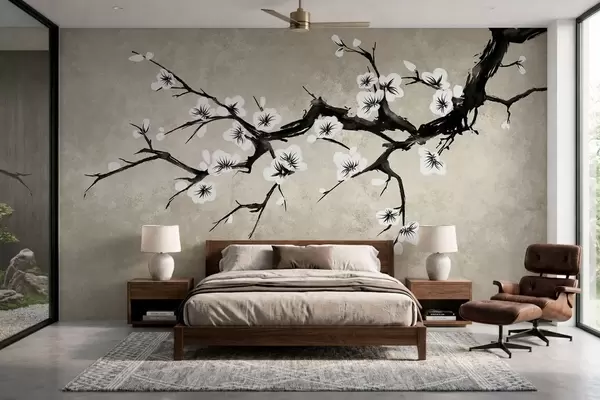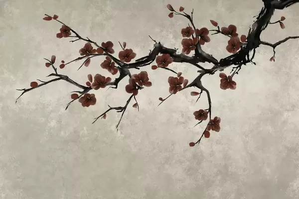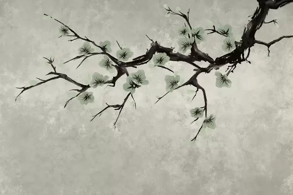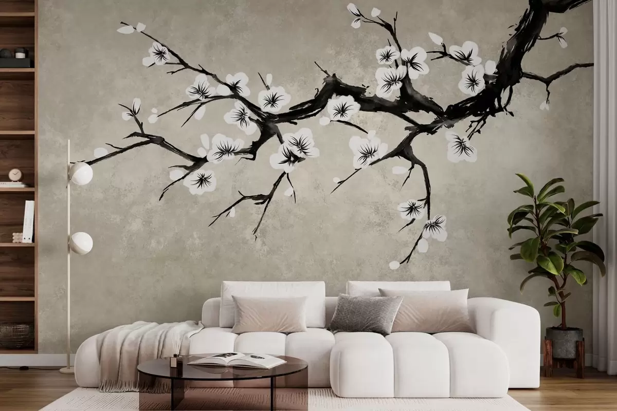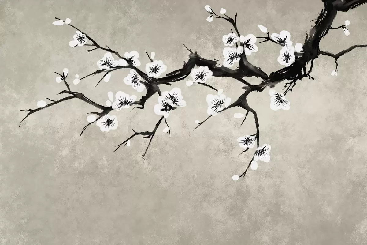 Fototapetai Šaka su baltomis gėlėmis minimalistiniame stiliuje Nr. w05425