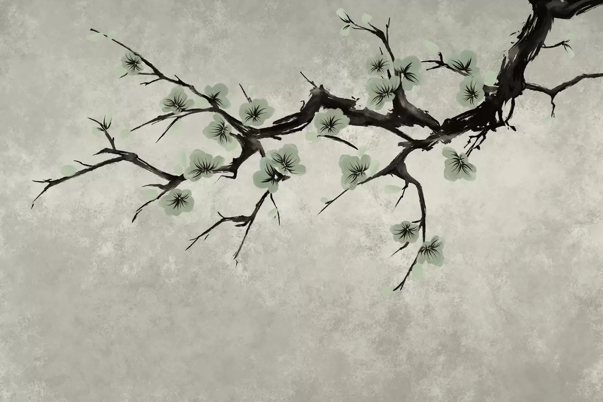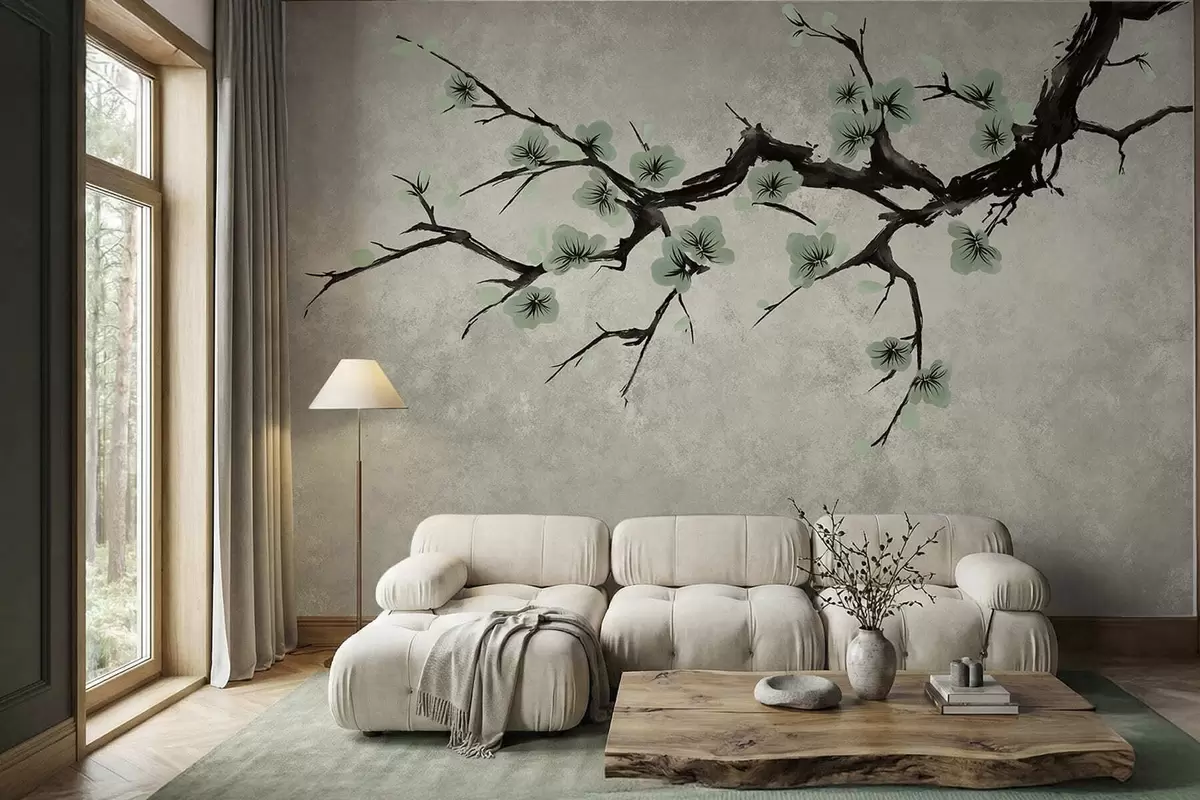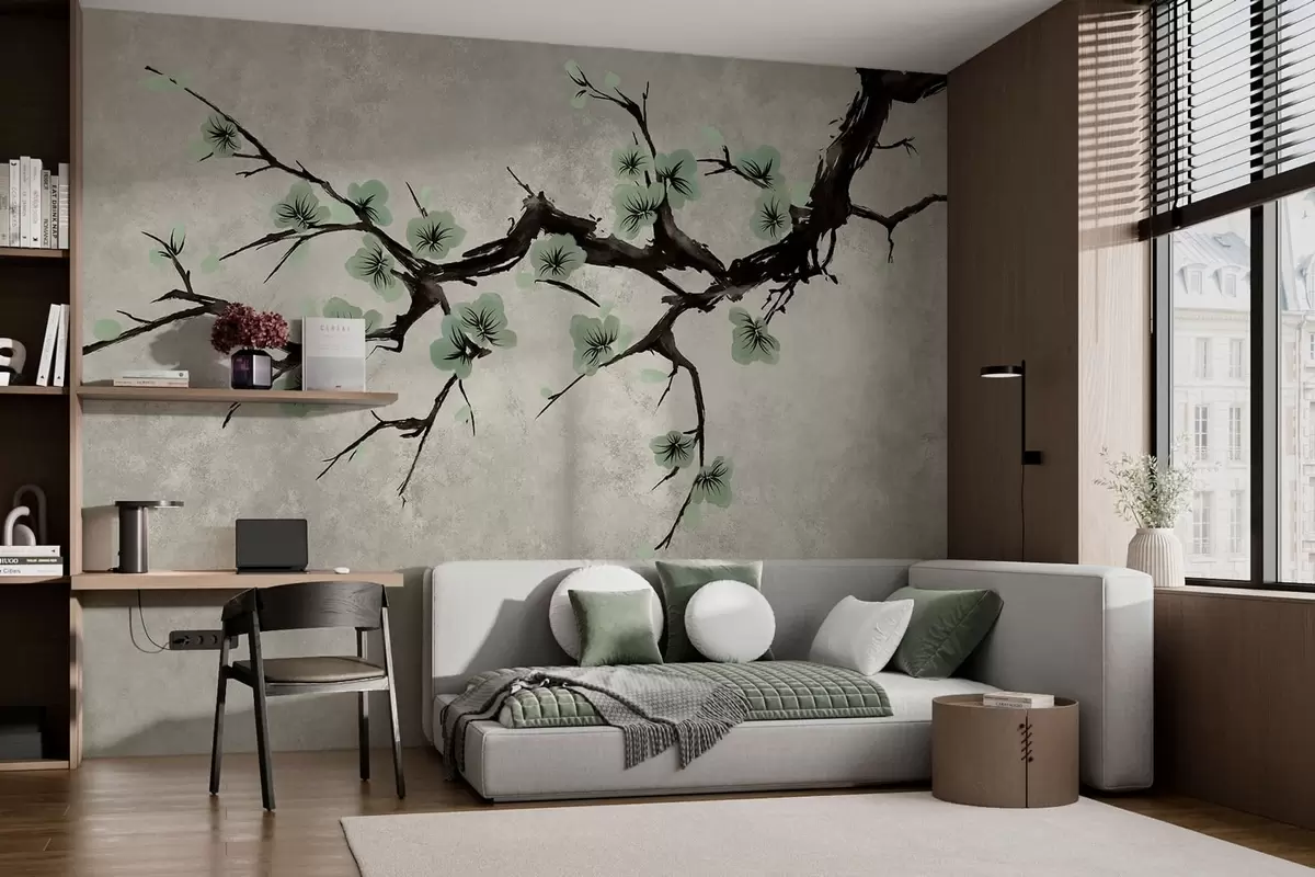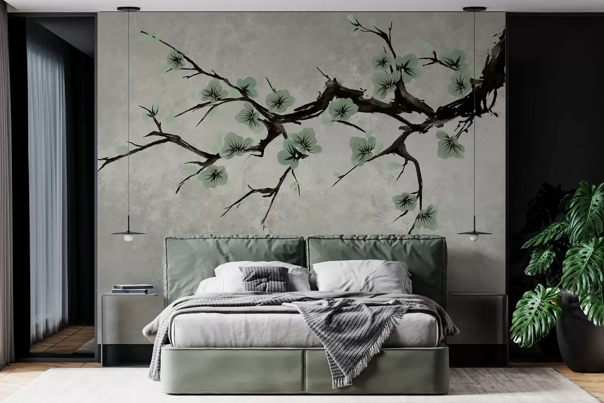 Fototapetai Šaka su žaliais žiedais ramių atspalvių Nr. w05425v2