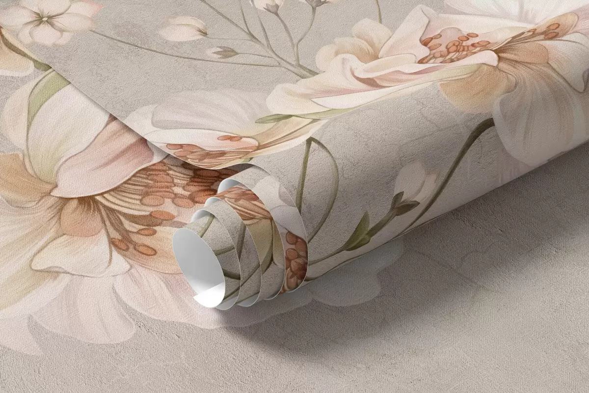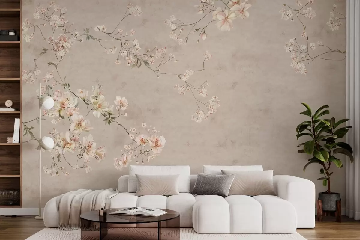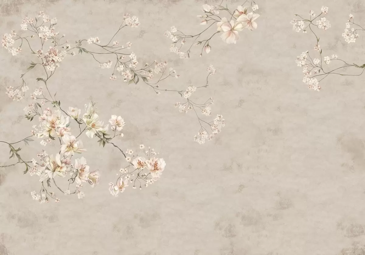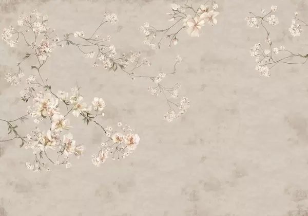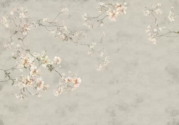 Fototapetai Švelnios gėlių šakelės kinietiško stiliaus motyvais ant šviesaus fono Nr. w05427