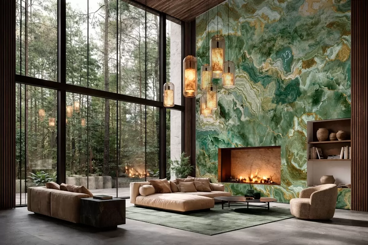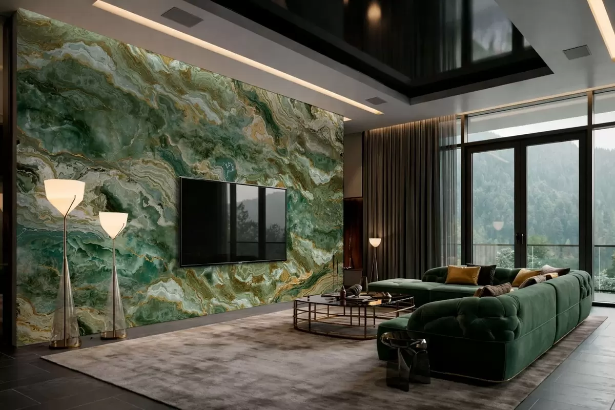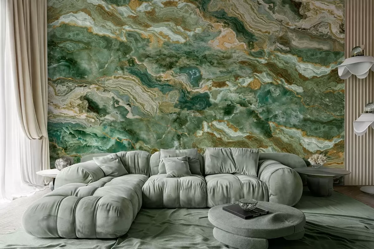 Fototapetai Žalios onikso tekstūros su banguotomis sluoksniuotomis gyslomis Nr. w05429