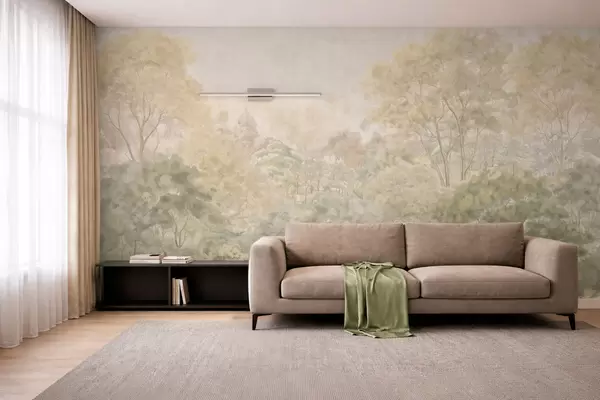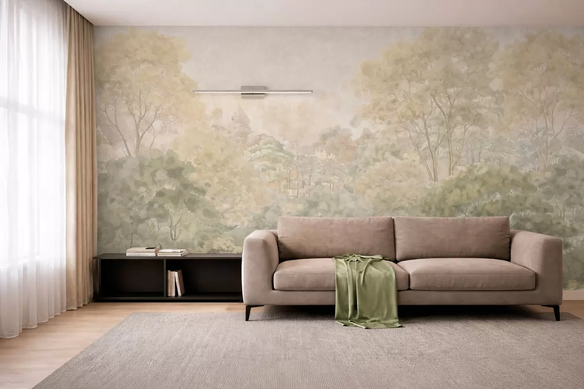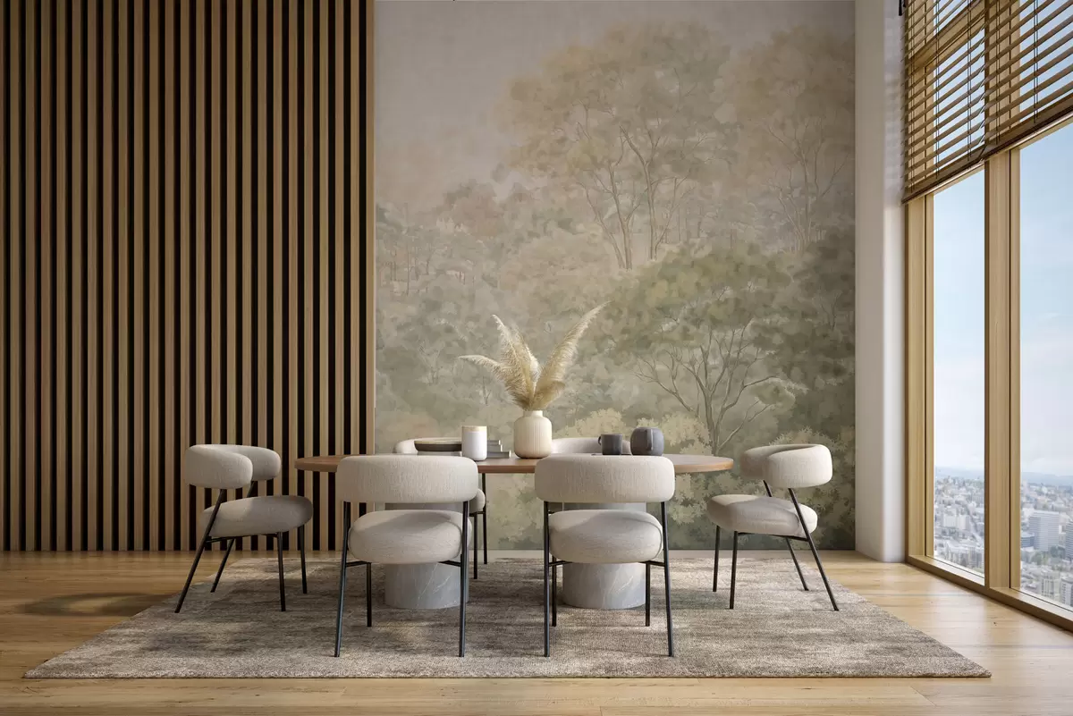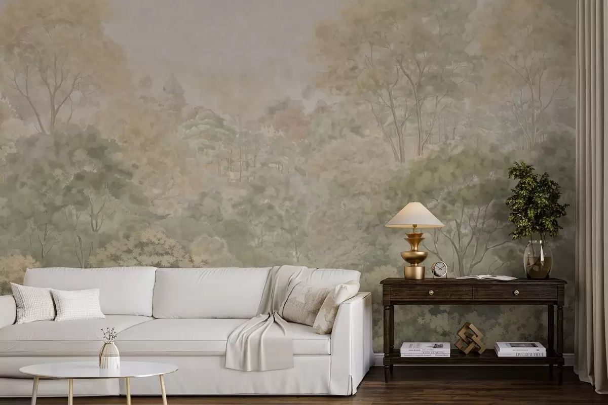 Fototapetai Retro miško peizažas prislopintų žalių atspalvių Nr. w05433