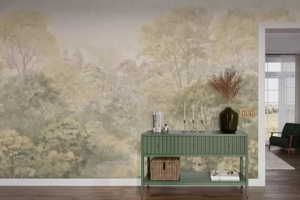 Fototapetai Retro miško peizažas prislopintų žalių atspalvių Nr. w05433