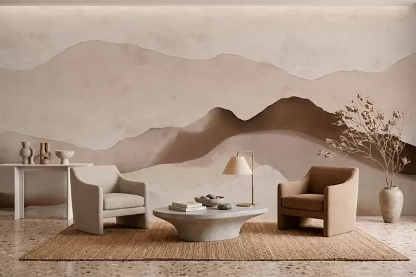 Fototapetai Abstrakčios kalnų kompozicijos „Japandi“ ir minimalistiniame stiliuose Nr. w05434