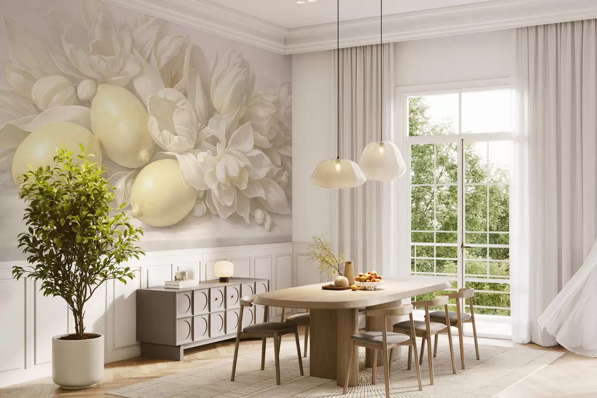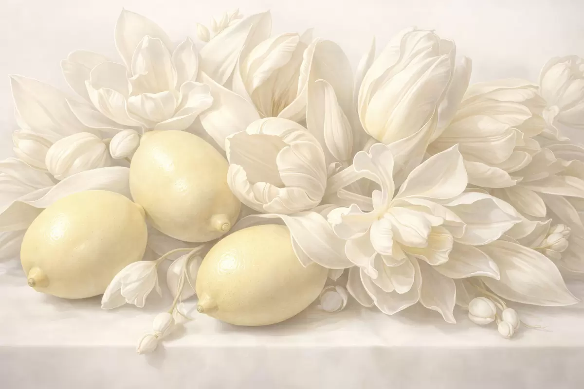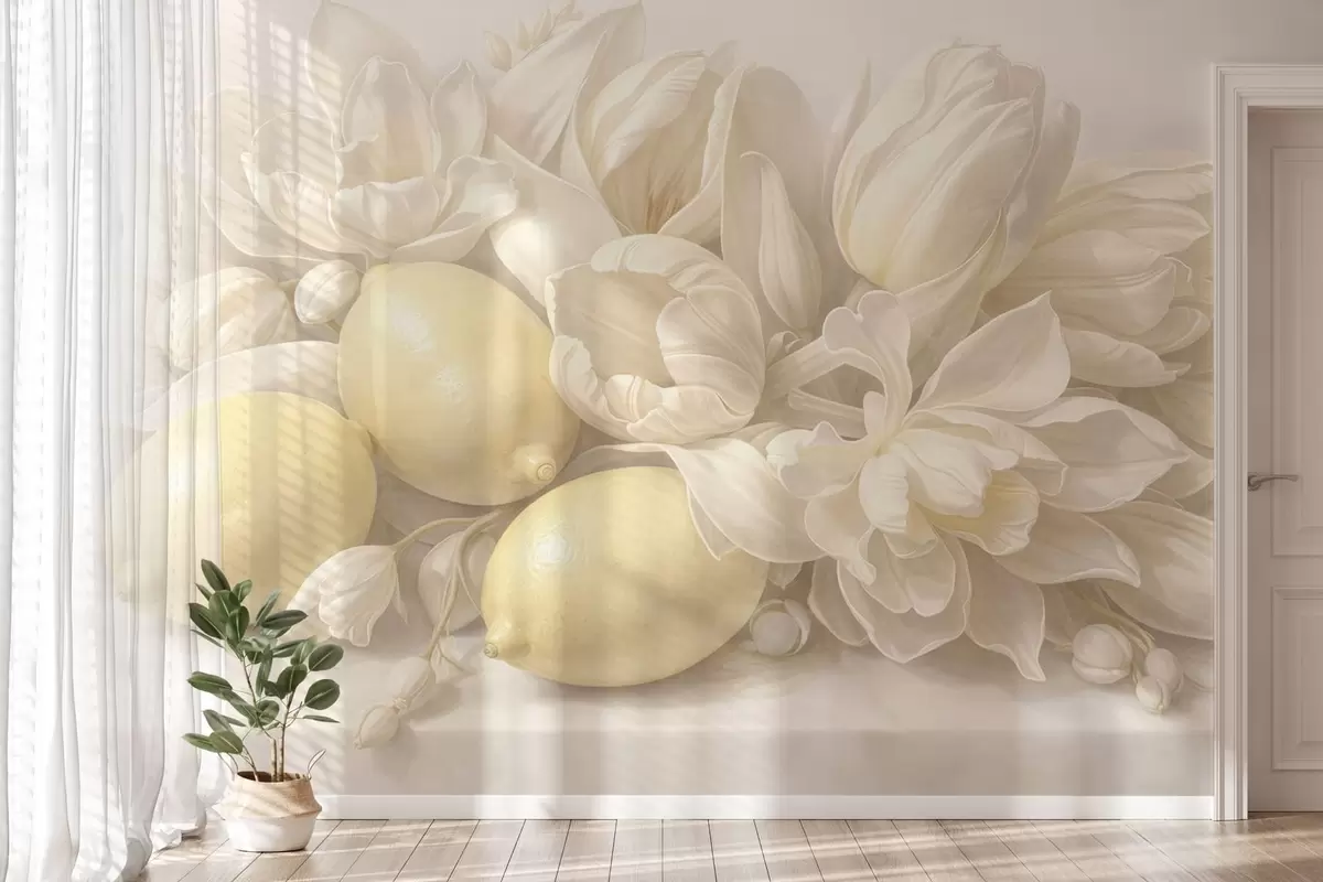 Fototapetai Subtilus gėlių puokštė su citrinomis Nr. w05449