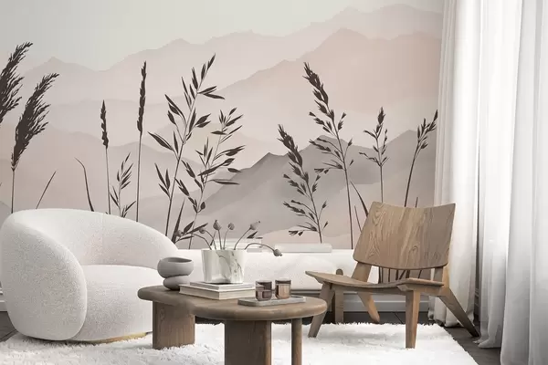 Fototapetai Žolės siluetai kalnų fone Nr. w05501