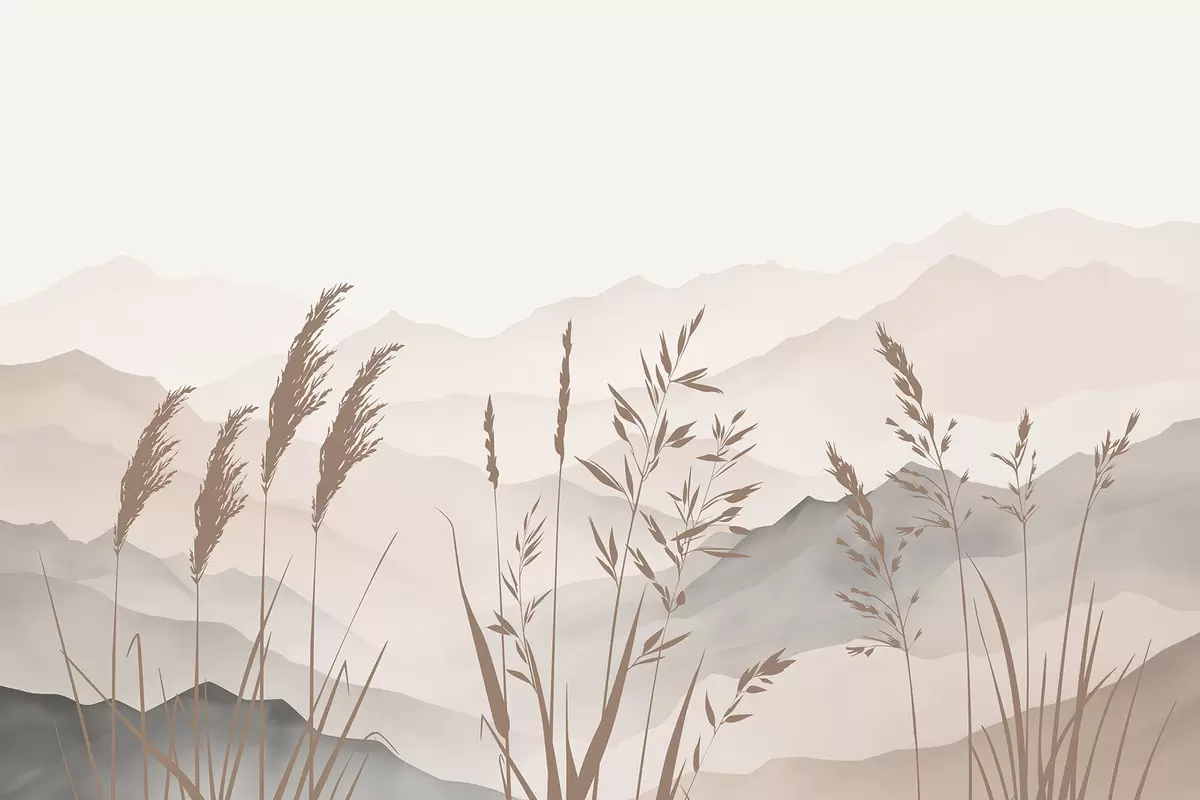 Fototapetai Žolės siluetai kalnų fone Nr. w05501v1