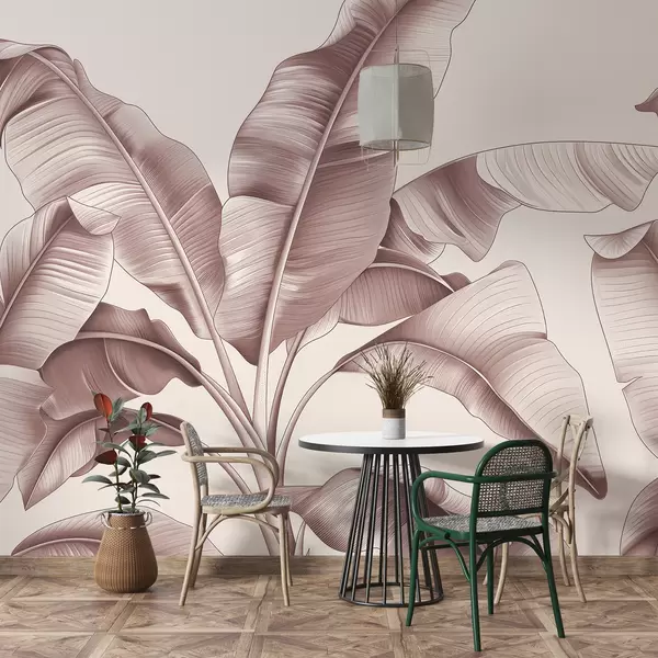 Fototapetai nupiešti dideli bananų lapai pastelinės rožinės spalvos Nr. w07877v1