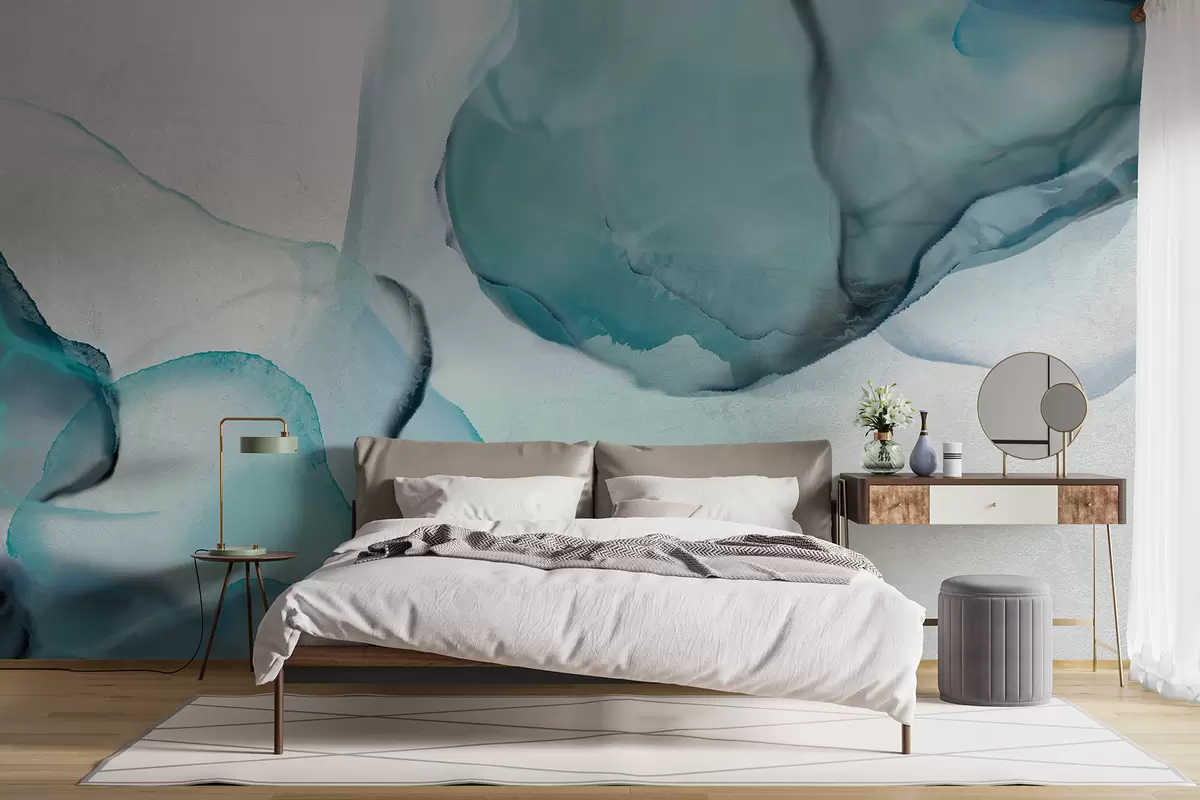 Fototapetai Abstraktus mėlynos ir baltos spalvos skystas menas, panašus į tekantį vandenį ir rašalą Nr. w07927