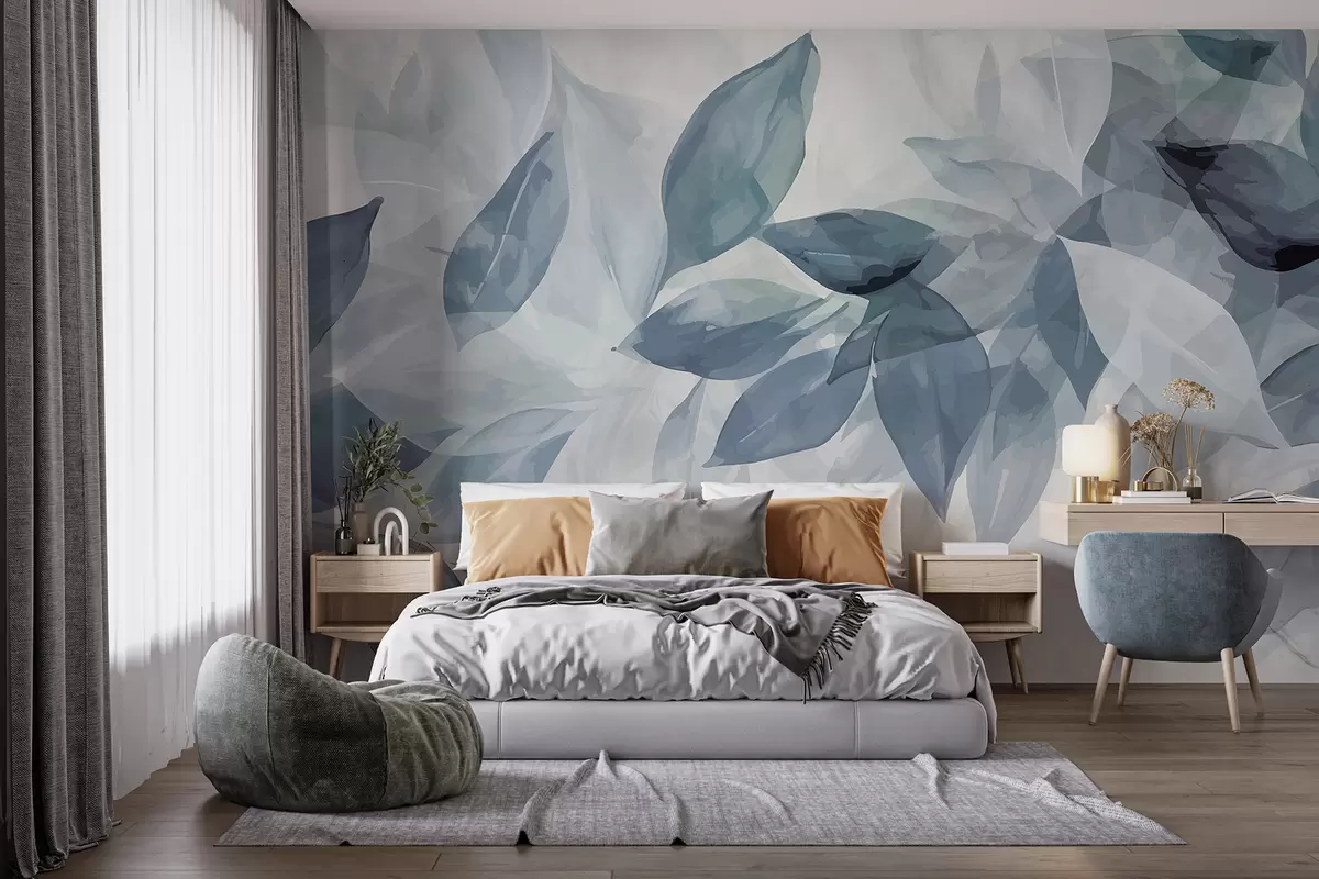 Fototapetai Minkšti pilki ir balti akvarelės lapai su neryškiu eteriniu fonu Nr. w07981