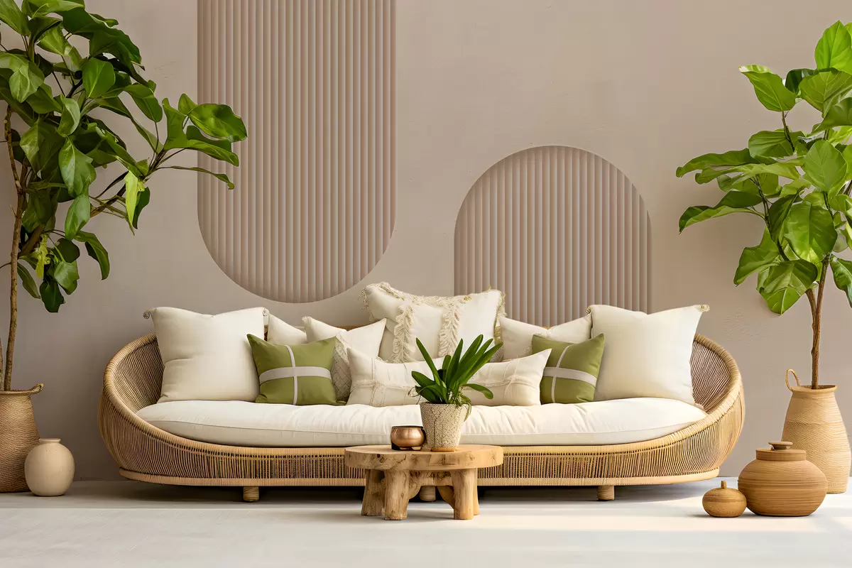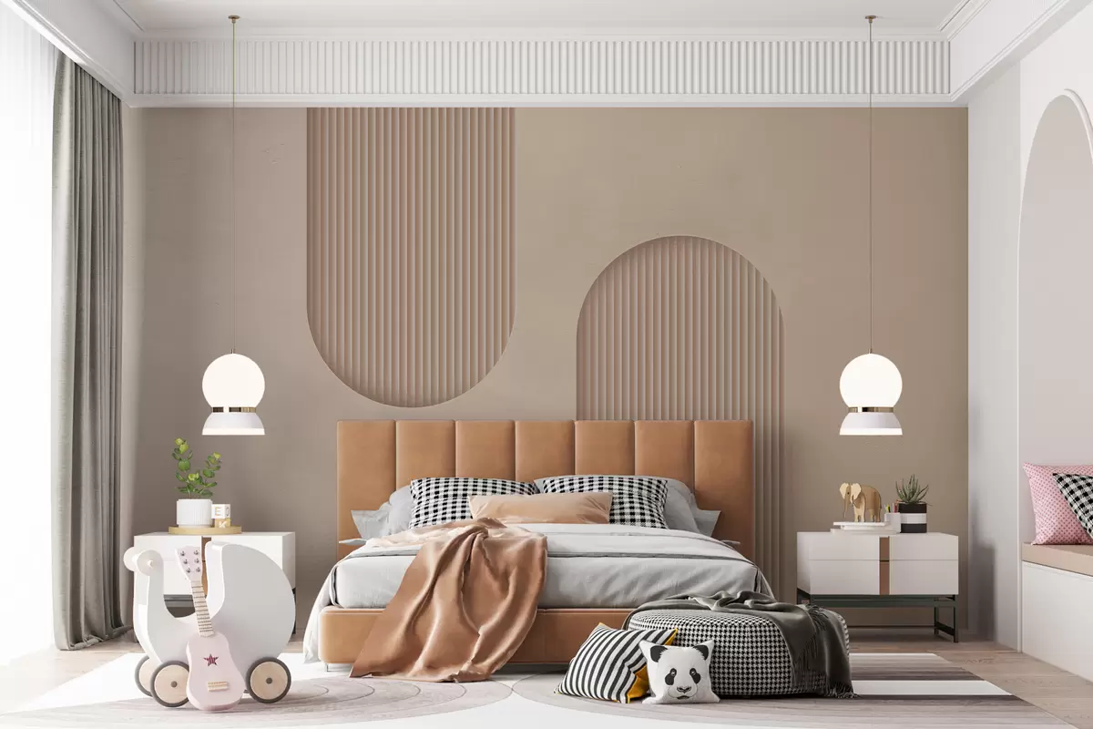 Fototapetai Art Deco tekstūros šiltų smėlio atspalvių tapetai. Tūrinių arkų imitacija Nr. w08048