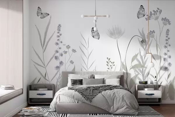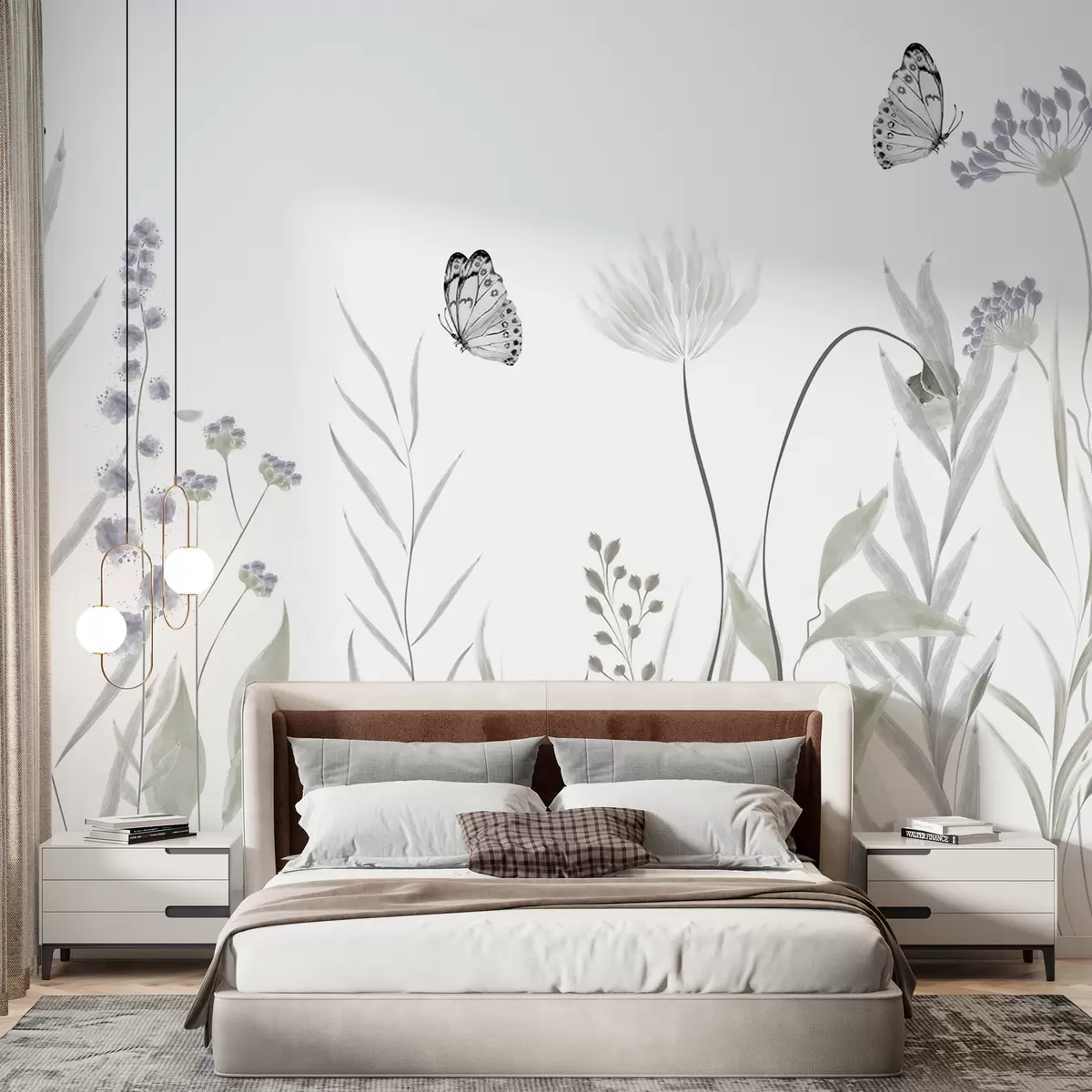 Fototapetai Laukinės gėlės ir drugeliai Nr. w08052