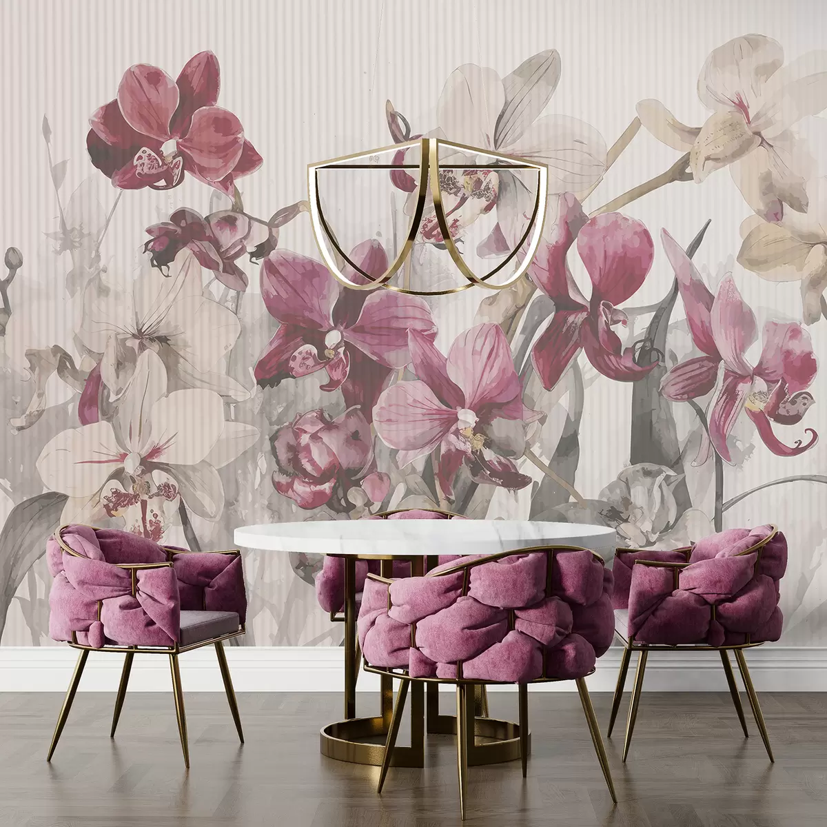 Fototapetai Ryškios rožinės ir baltos orchidėjų gėlės šviesios akvarelės tekstūros fone Nr. w08225