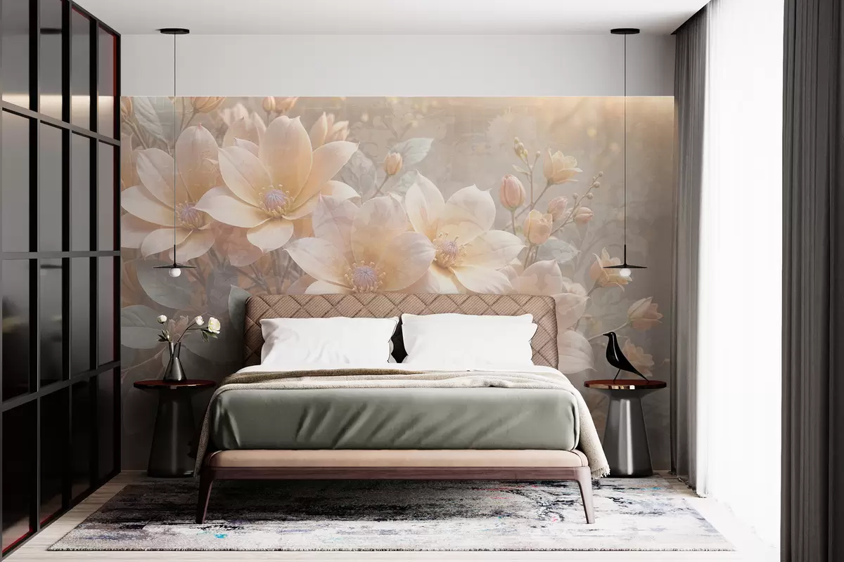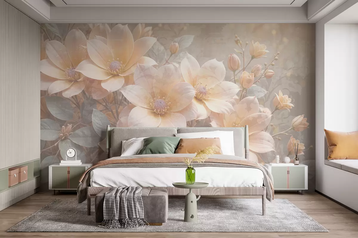 Fototapetai Pastelinių spalvų gėlės su subtiliais žiedlapiais neryškios tekstūros fone , sukuriančios ramią atmosferą Nr. w08273