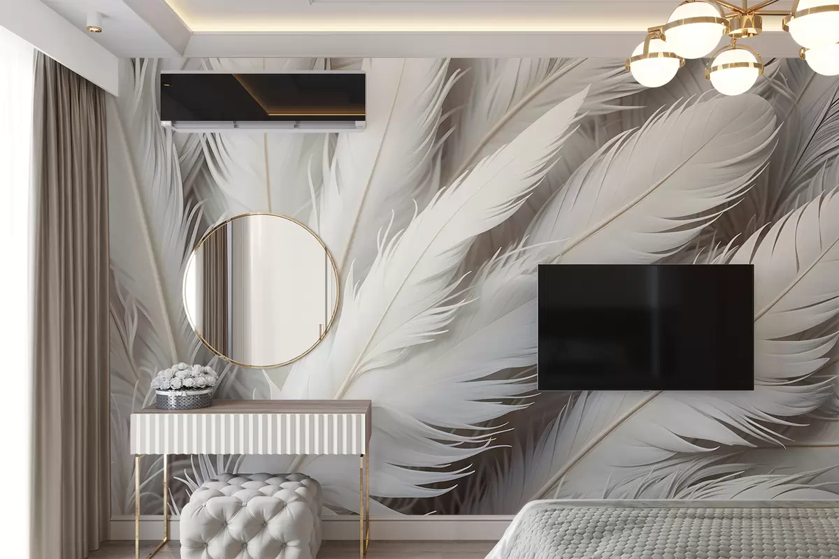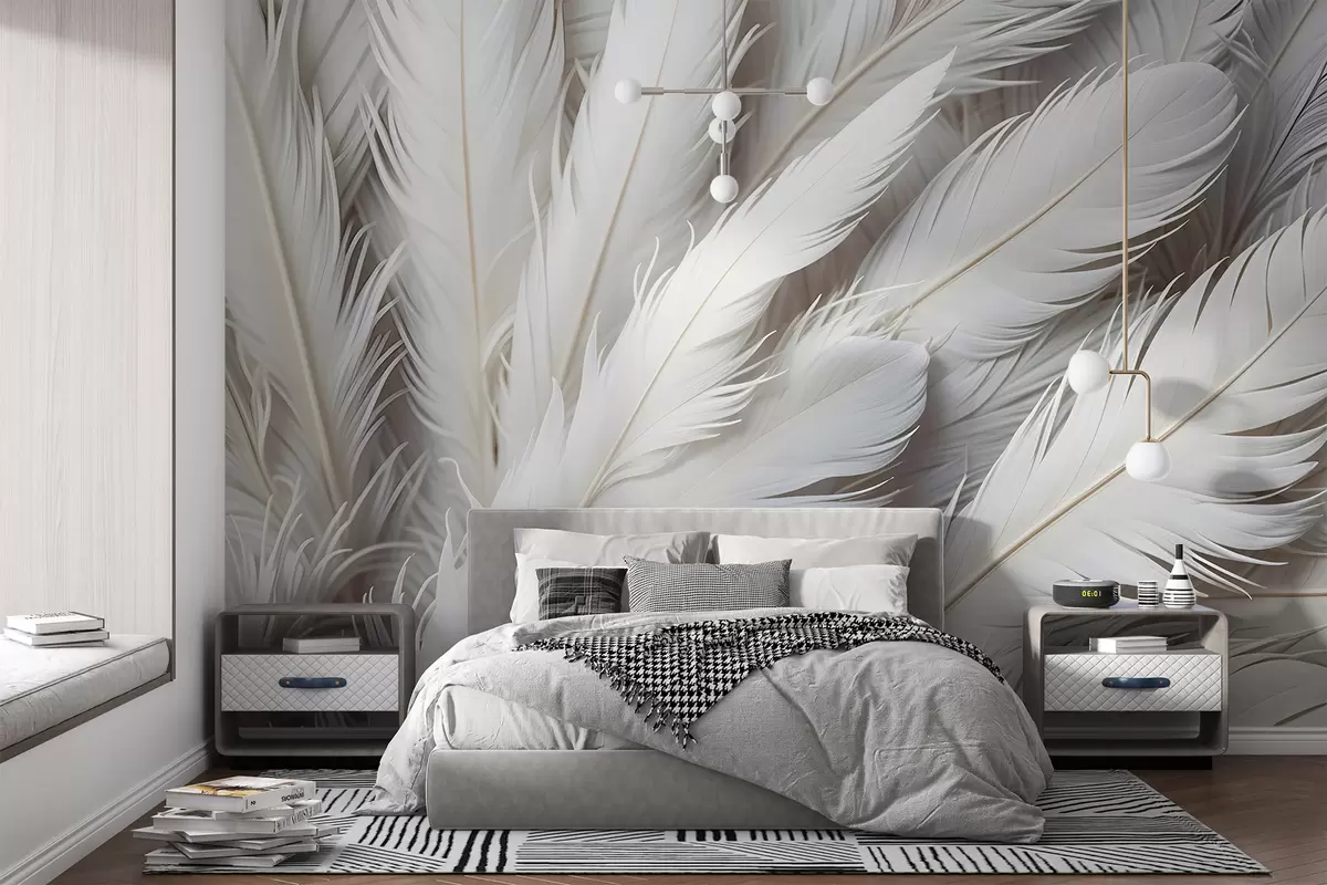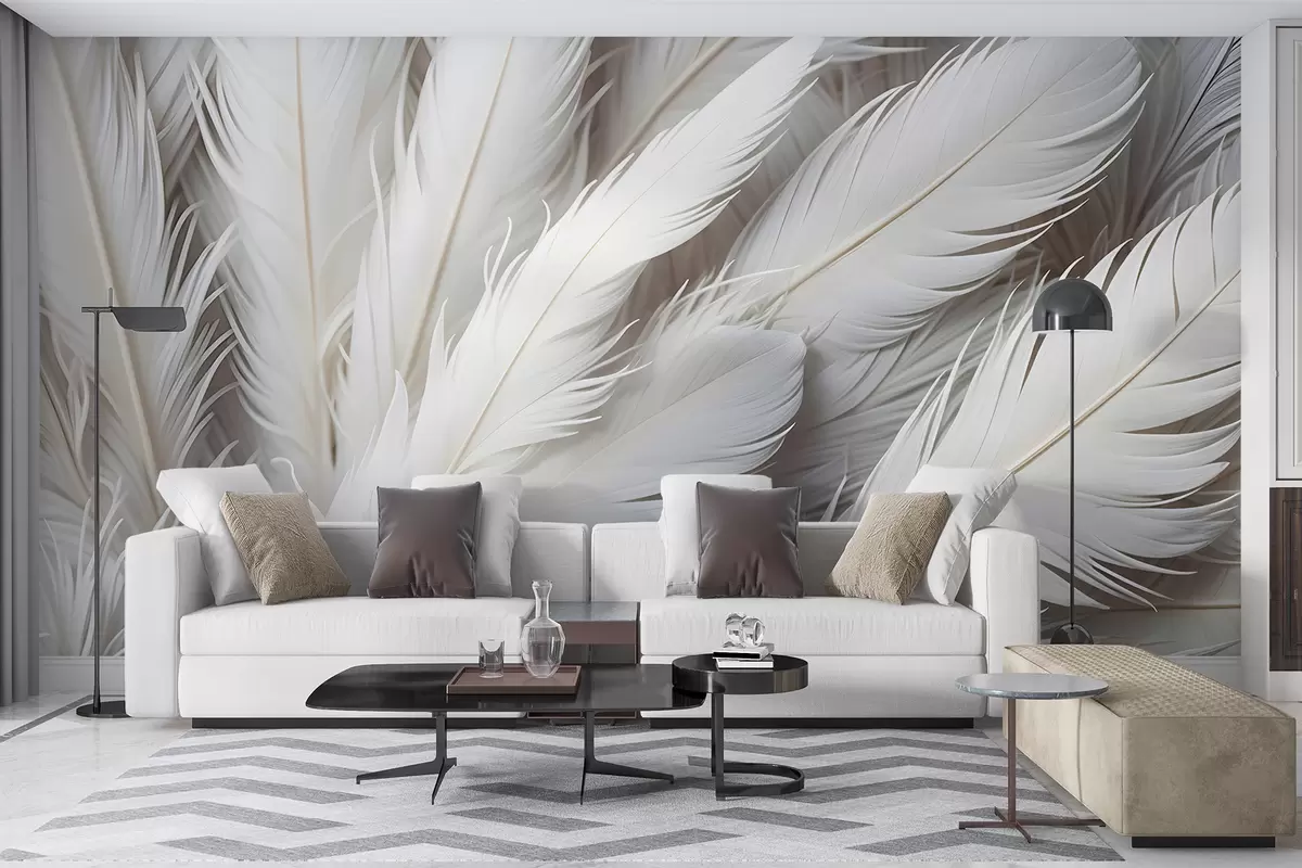 Fototapetai Minkštos, purios baltos plunksnos, švelnios, švelnios tekstūros, šviesiame fone Nr. w08319