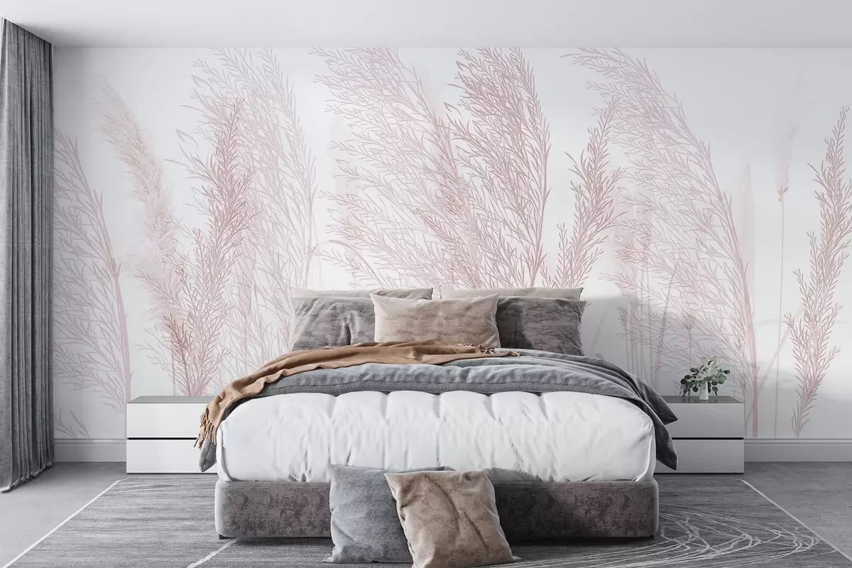 Fototapetai Švelni pastelinės rožinės spalvos minkšta pampų žolė baltame fone minimalistinė kompozicija Nr. w08351
