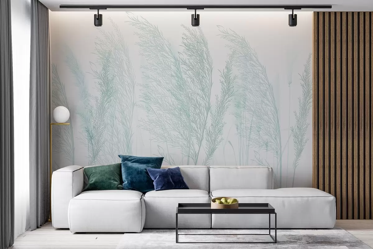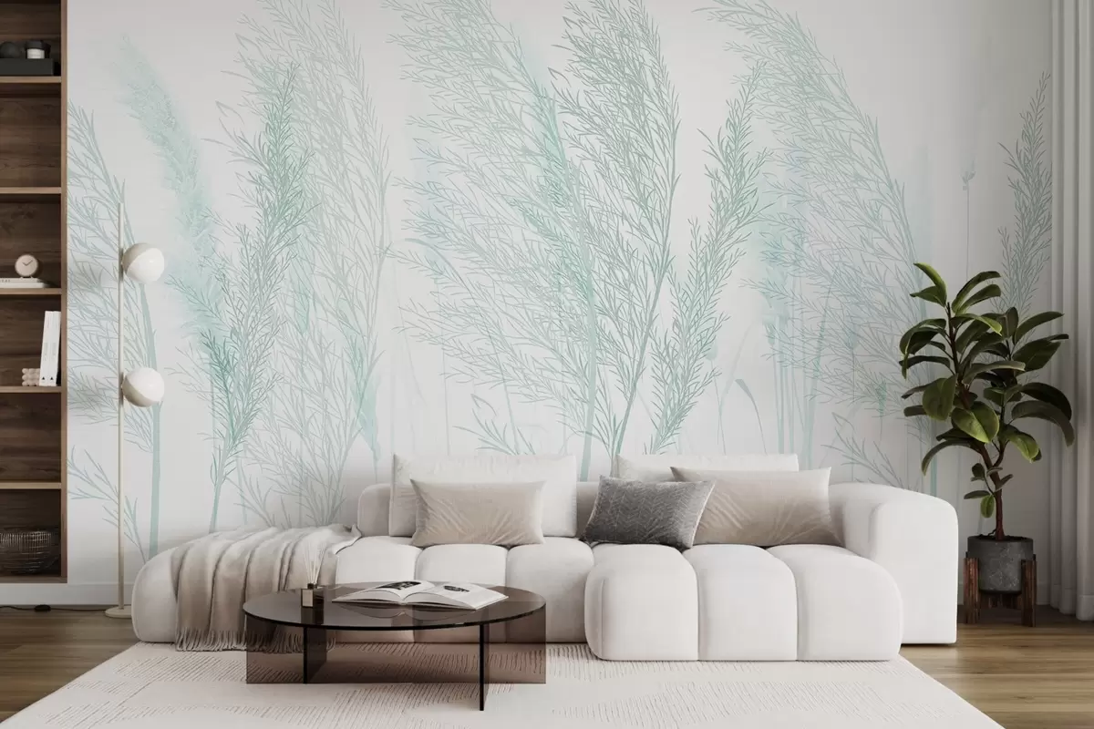 Fototapetai Švelni pastelinė turkio spalvos minkšta pampų žolė baltame fone minimalistinė kompozicija Nr. w08351v2