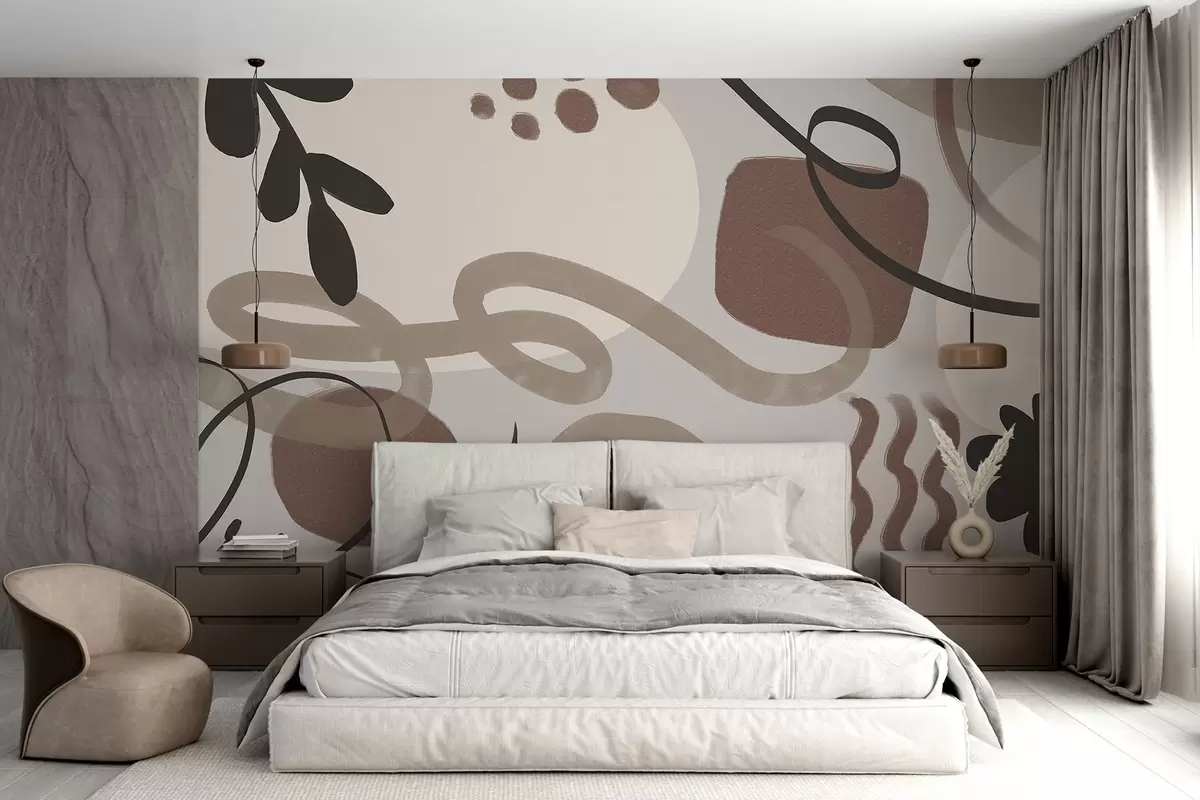 Fototapetai Abstraktus tekstūrinis minimalistinis modernus raštas su žemės tonų - rudos, smėlio ir juodos - formomis Nr. w08384