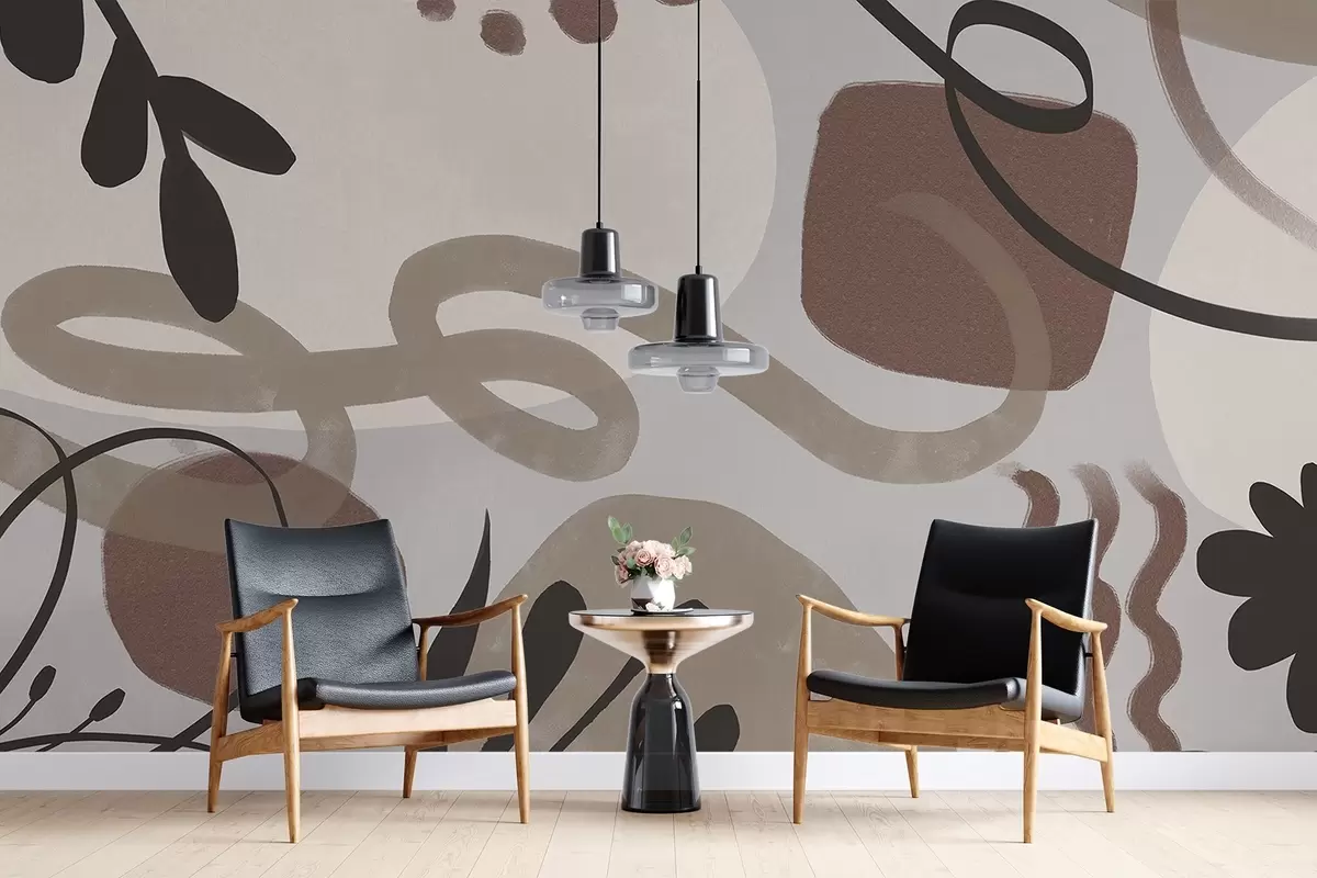 Fototapetai Abstraktus tekstūrinis minimalistinis modernus raštas su žemės tonų - rudos, smėlio ir juodos - formomis Nr. w08384