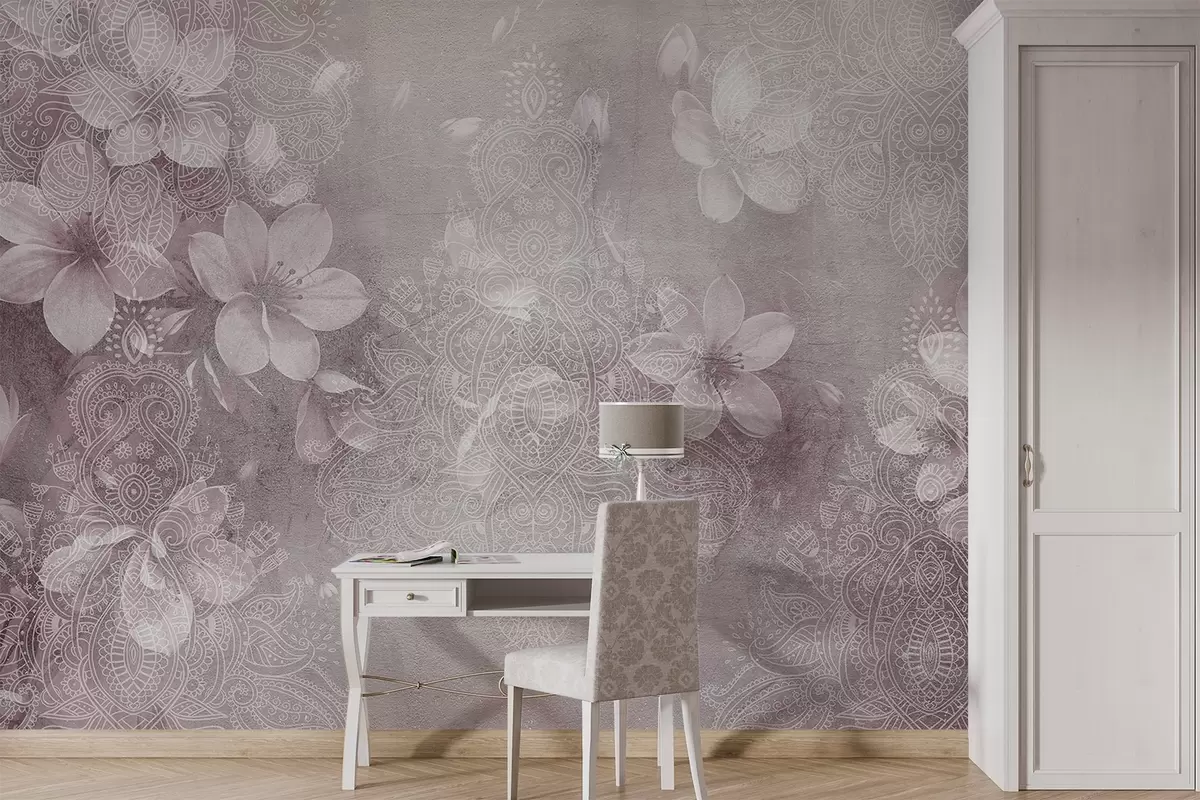 Fototapetai Švelnus baltų gėlių piešinys neryškios tekstūros nėrinių bordo fone Nr. w08405v2
