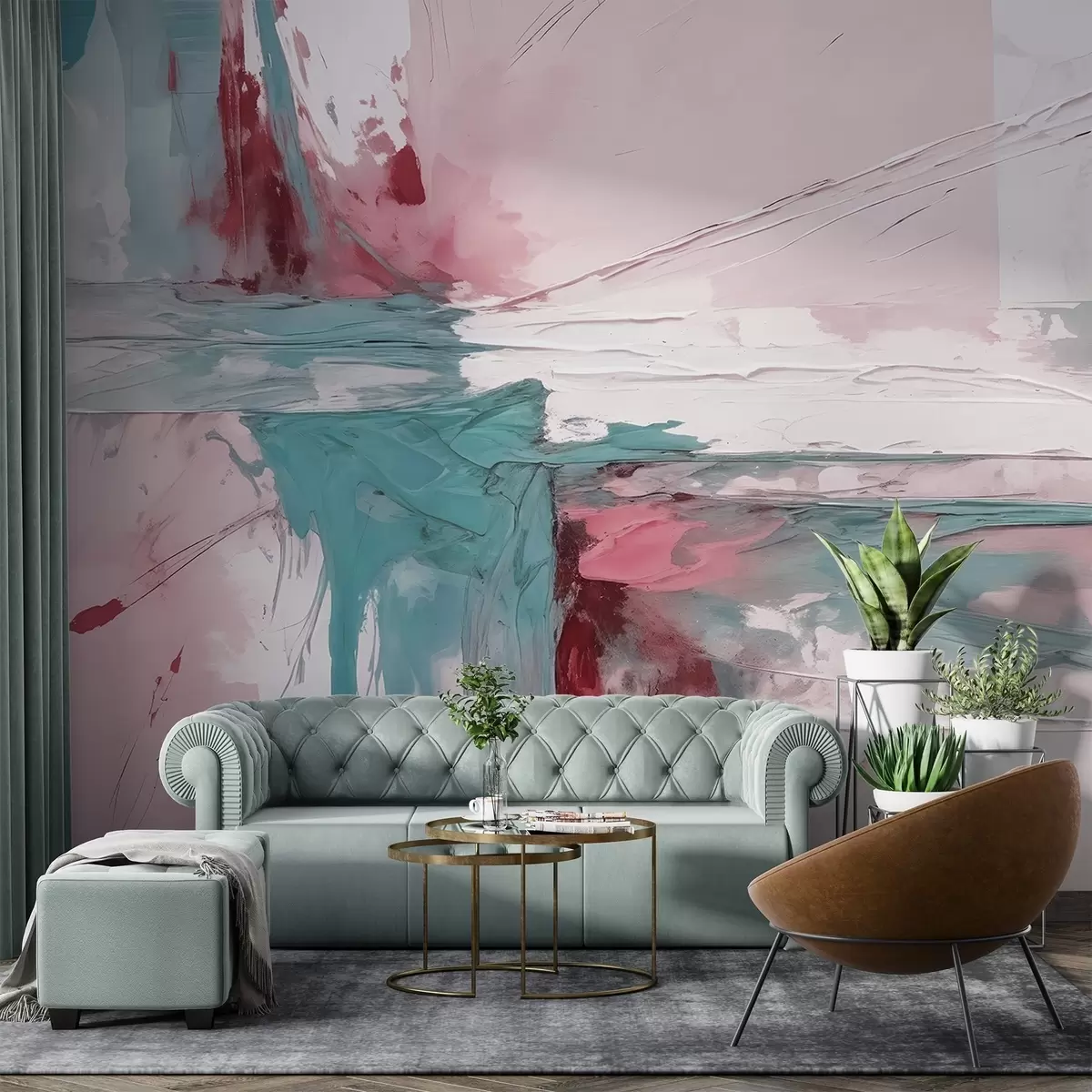 Fototapetai Minimalistinė abstraktaus meno kompozicija su drąsiais rausvų, mėlynų ir baltų dažų potėpiais Nr. w08414v1