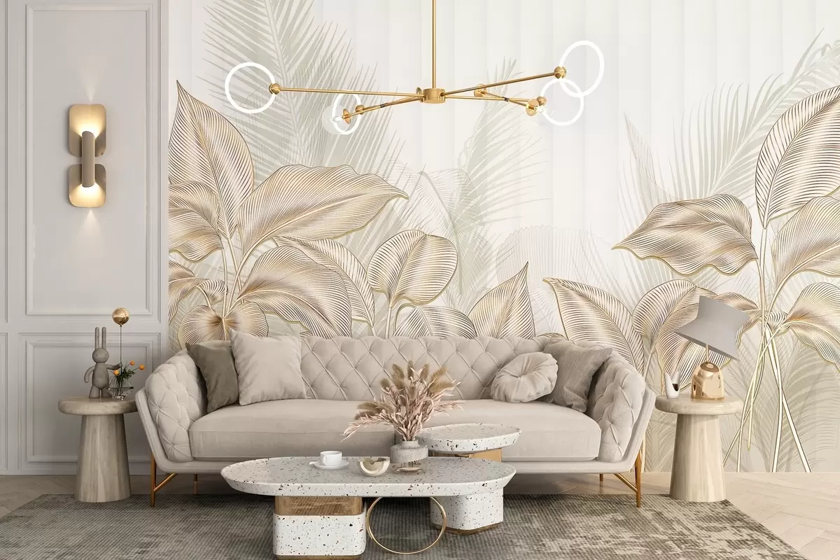 Fototapetai Elegantiški baltos ir smėlio spalvos palmių lapai šviesiame faktūriniame fone Nr. w08434