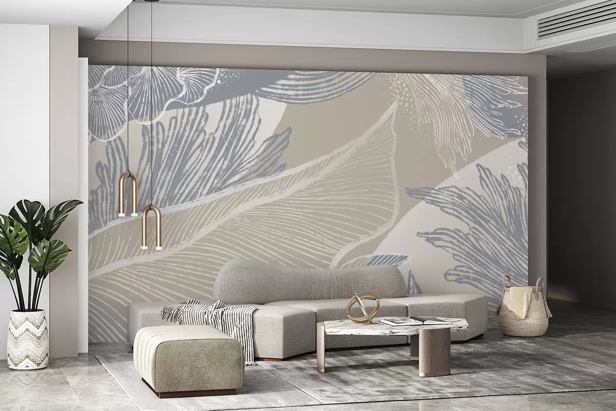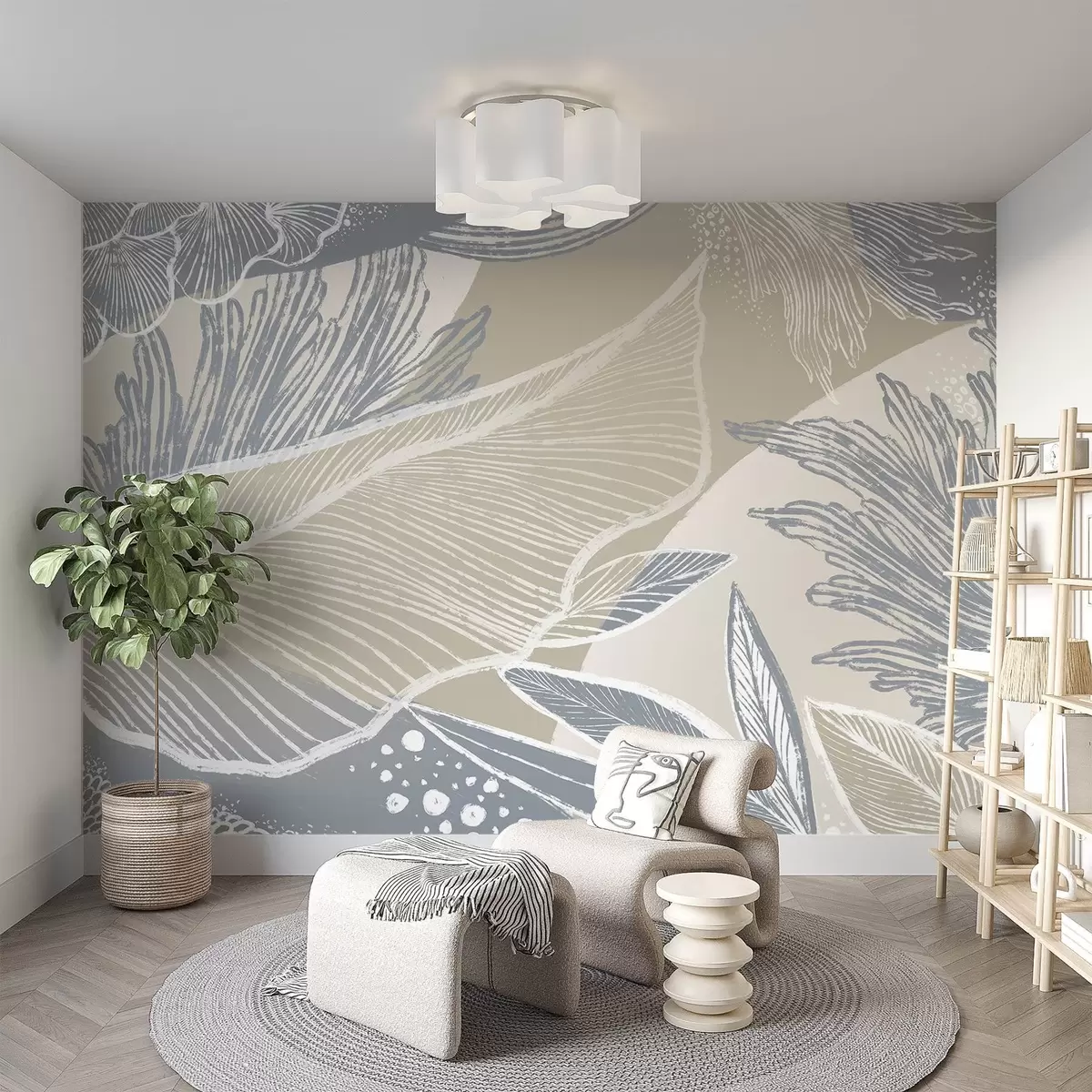 Fototapetai Pastelinės mėlynos ir baltos spalvos abstraktus organinių formų ir linijų atspaudas su prislopinta spalvų palete Nr. w08450