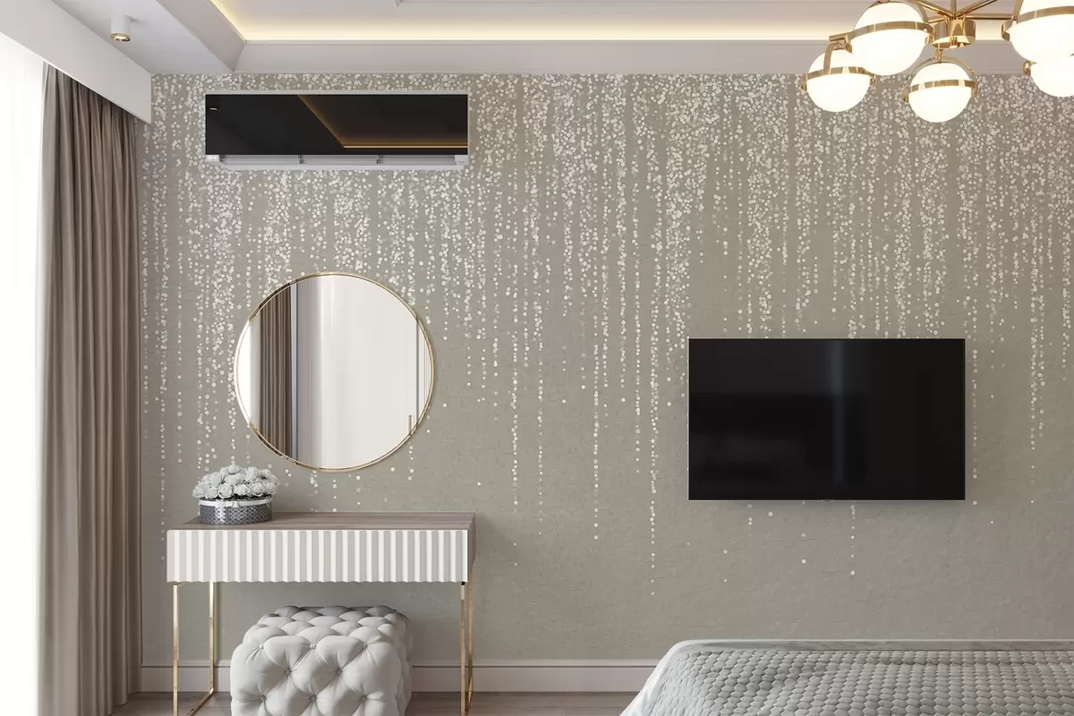 Fototapetai Vertikalus elegantiškas taškuotų girliandų raštas smėlio spalvos tekstūriniame fone, sukuriantis gylio ir judesio pojūtį Nr. w08470