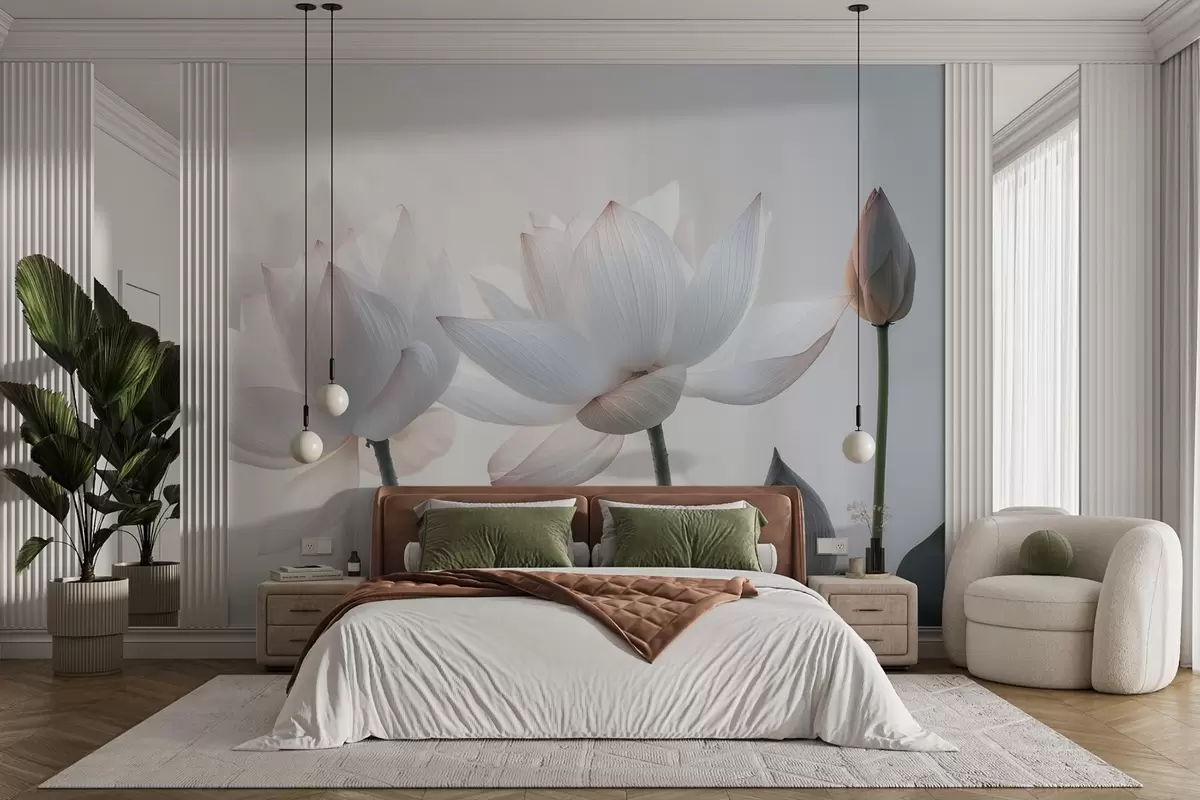 Fototapetai Švelnios lotoso gėlės su žiedlapiais ir lapais Nr. w08488