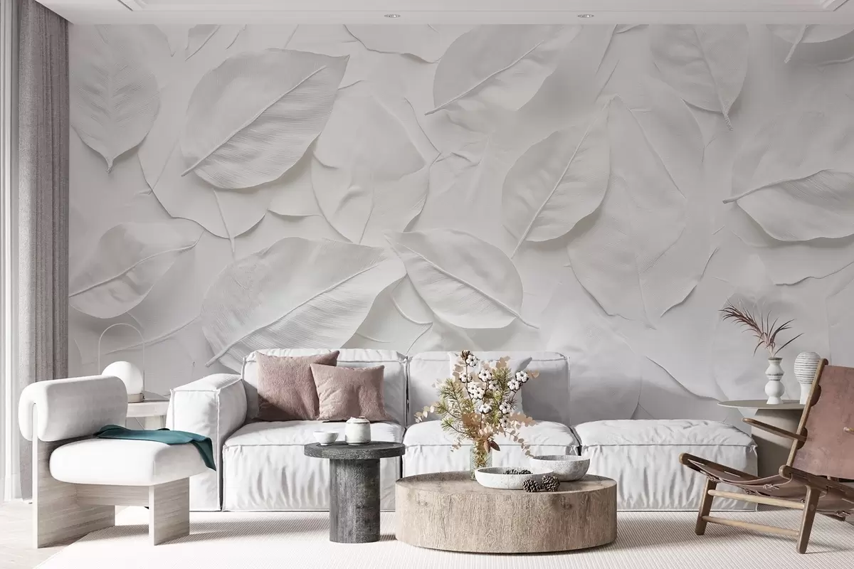 Fototapetai Balta gėlių abstrakcija iš lapų w08494
