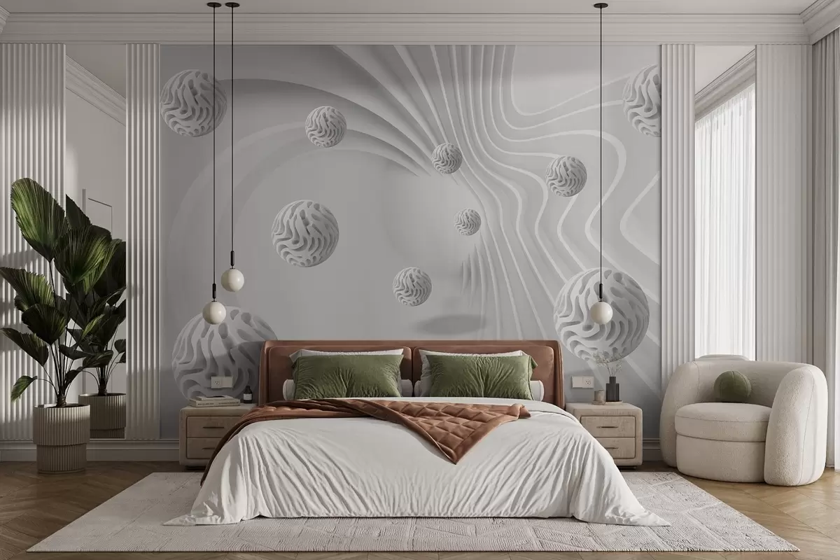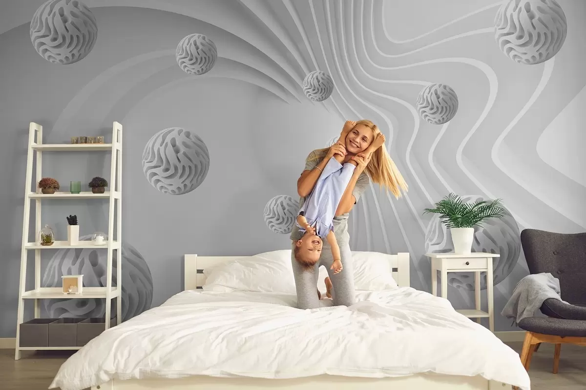 Fototapetai 3D pilka abstrakcija su sferomis ir gylio efektu Nr. w08553
