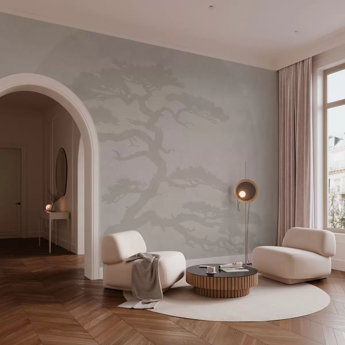 Fototapetai Japoniškas bonsai medelis ir geometrijos grunge fonas Nr. w08554v1