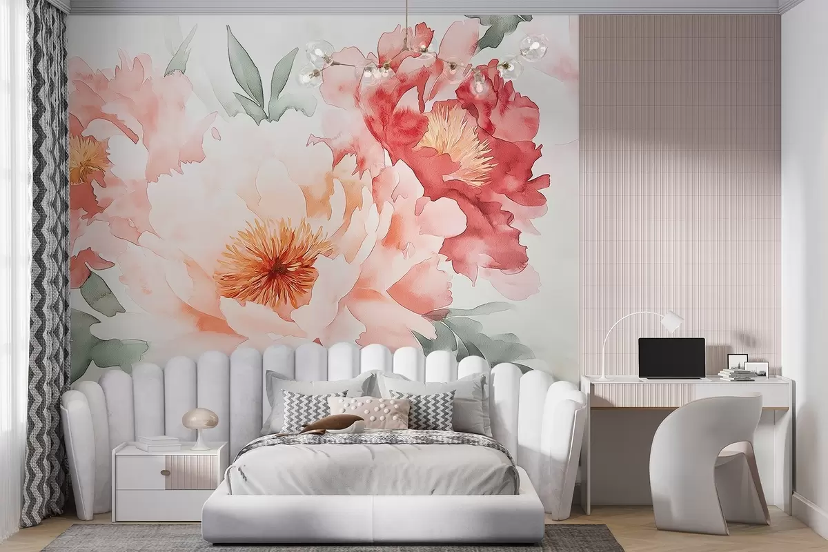 Fototapetai Dideli subtilūs akvareliniai bijūnai Nr. w08571