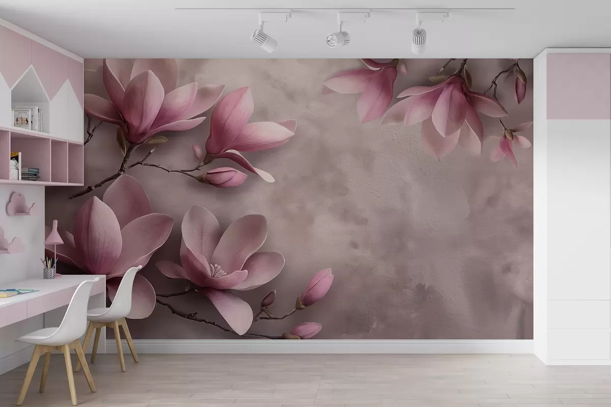 Fototapetai Švelnios rožinės magnolijos ant betoninės sienos Nr. w08636