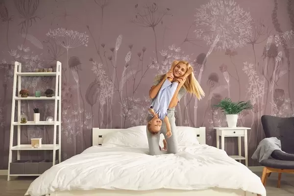 Fototapetai Akvarelinio stiliaus rausvų tonų pienės ir laukinės gėlės Nr. w08637v1